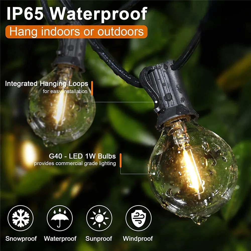 Светодиодный светильник G40 на солнечной батарее, 7 м, 20 светодиодный, прозрачные винтажные лампочки для внутреннего/наружного использования