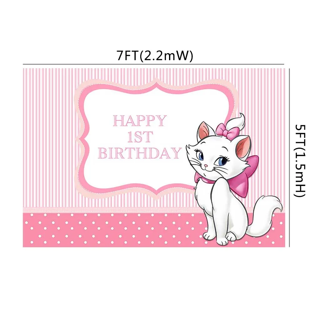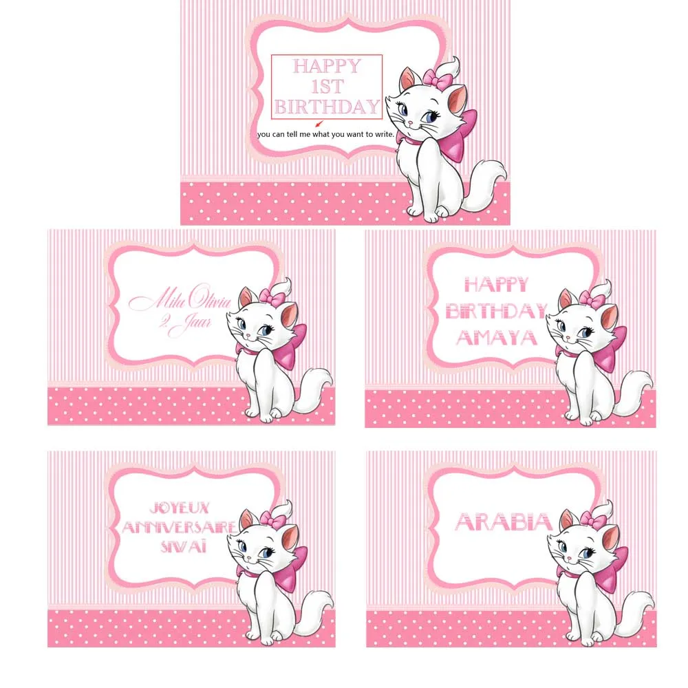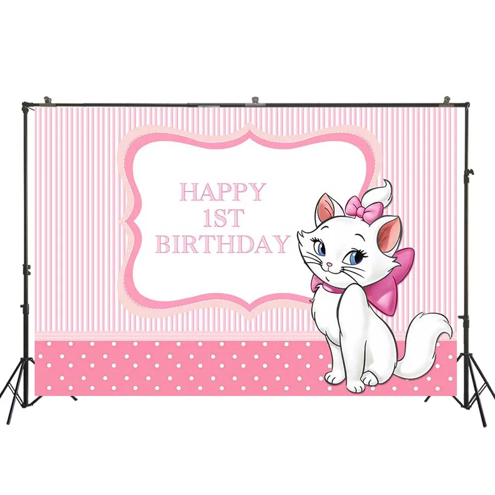Девушка 1st День рождения фон для фотосъемки с изображением Милая кошка горошек полоски на розовом фоне Декор десертного стола, изготовленные на заказ W-5008