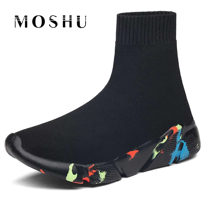Кроссовки-носки женские, вязаные, на платформе, Вулканизированная подошва, без шнуровки, стрейчевые, модная обувь для тренировок, черные, 2021