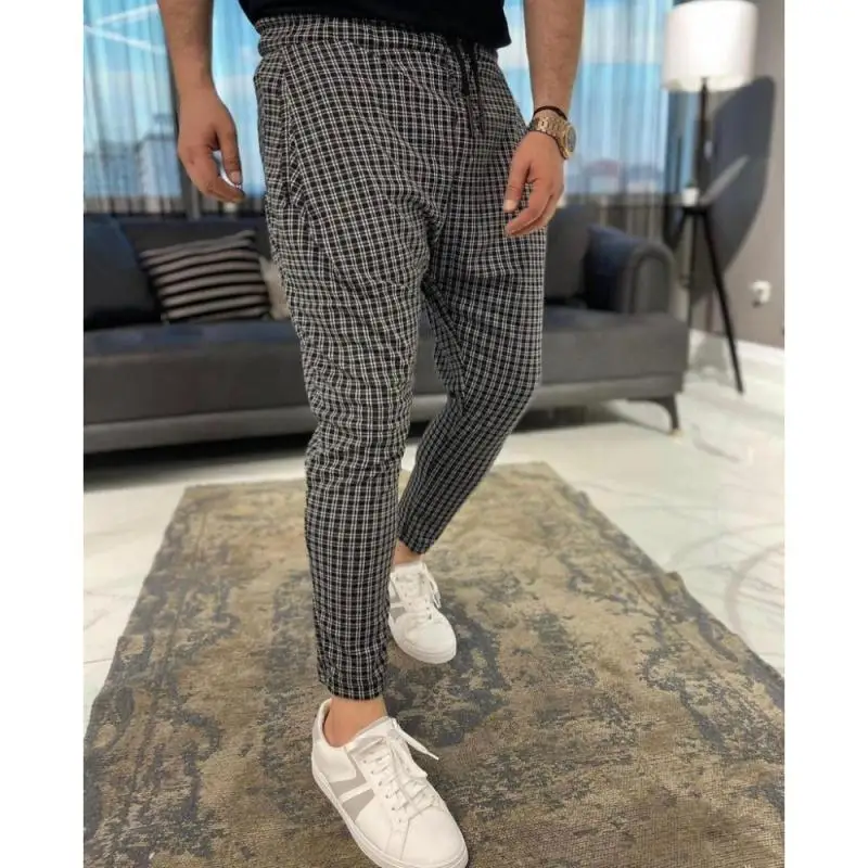 2021 весенние модные клетчатые брюки-карандаш с принтом для мужчин,...