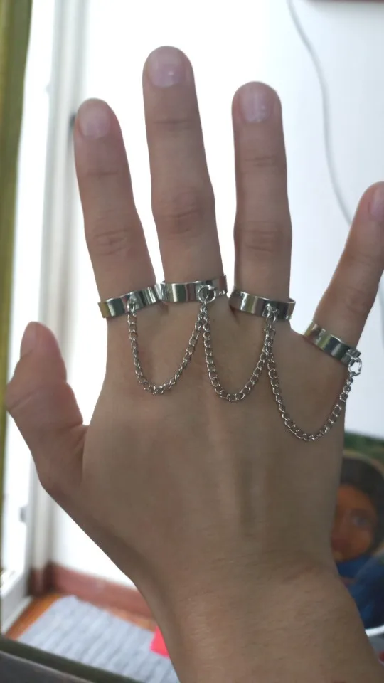 Кольцо в стиле панк, Крутое кольцо, регулируемая цепочка из четырех...