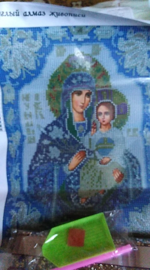 Все соответствует описанию. Картина очень красивая! Стразы стеклянные, но есть немного пыльные и мутные. Инструмент простой, размер выкладки. 24/34. Надеюсь, что получится классно. Заказ пришел за 28 дней в Беларусь, за что большое спасибо продавцу! Рекомендую)))