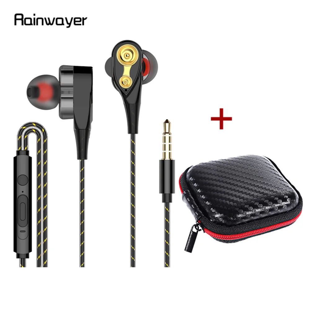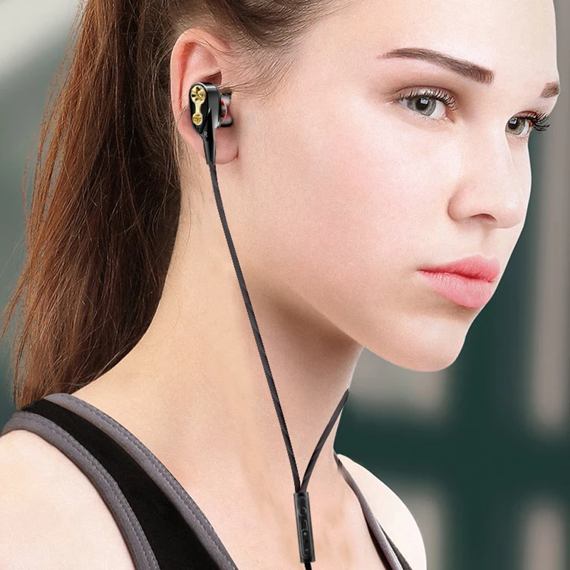 Проводные наушники, спортивные наушники с высокими басами, стерео наушники-вкладыши с двойным приводом, проводные наушники с микрофоном для телефона
