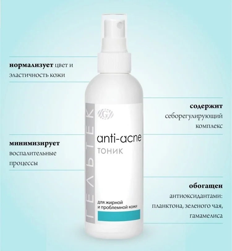 Гельтек Тоник для жирной и проблемной кожи себорегулирующий, от прыщей и угревой сыпи, 200 мл