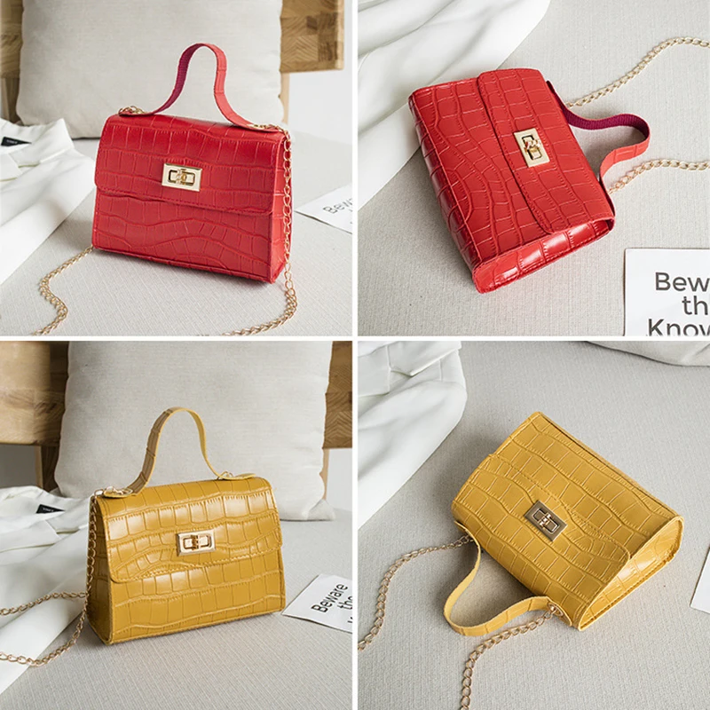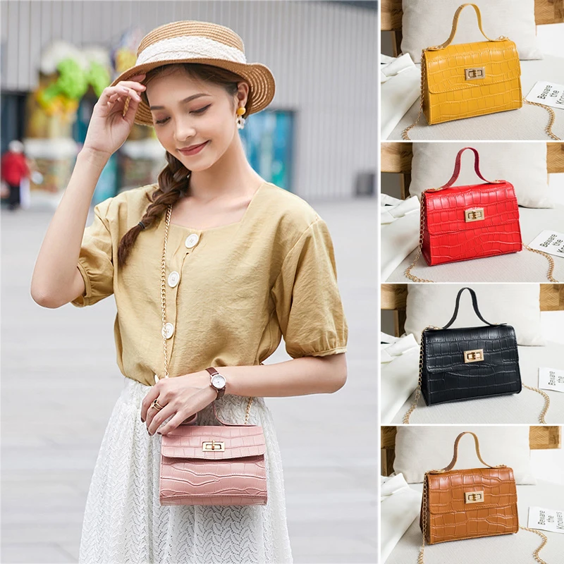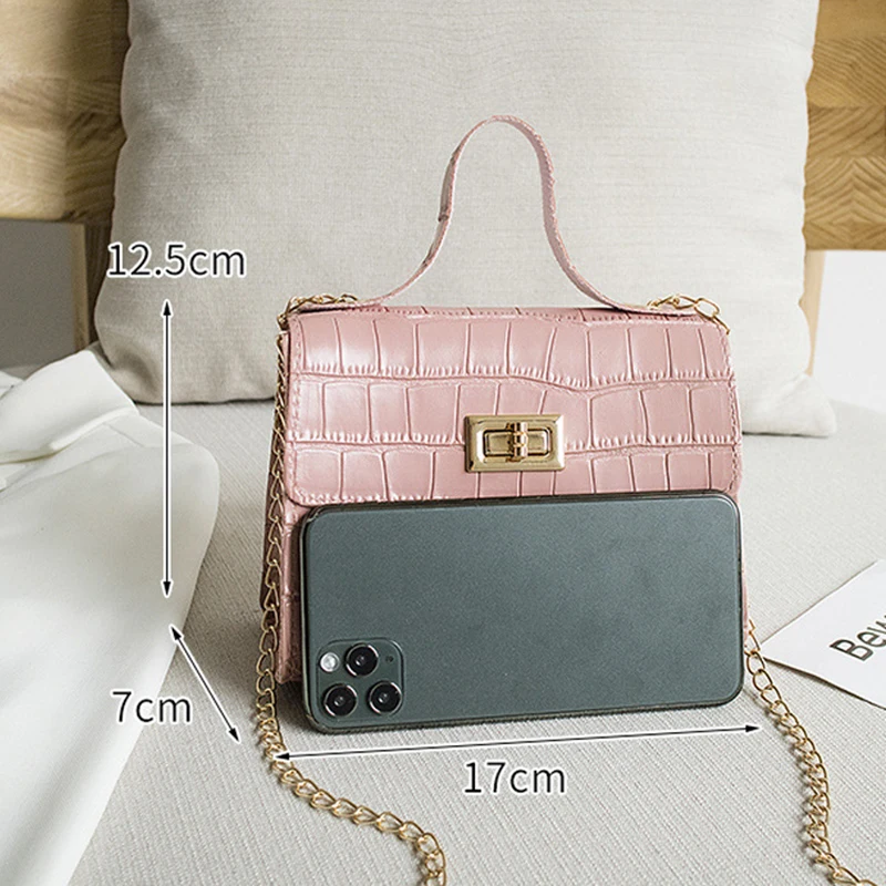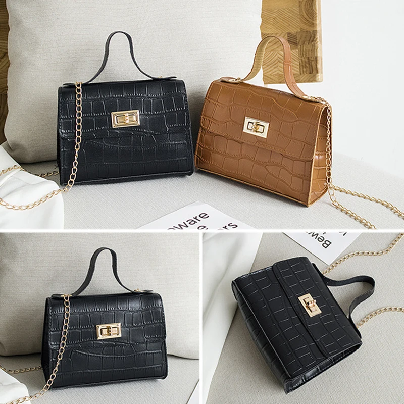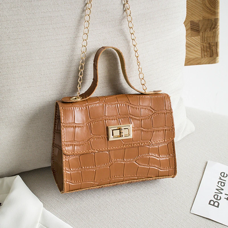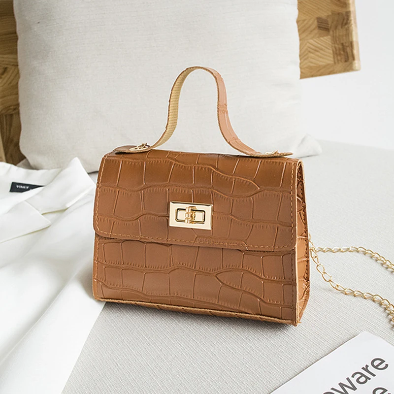 Сумка на плечо женская кожаная, саквояж кросс-боди в стиле ретро, однотонная сумочка на цепочке, чемоданчик