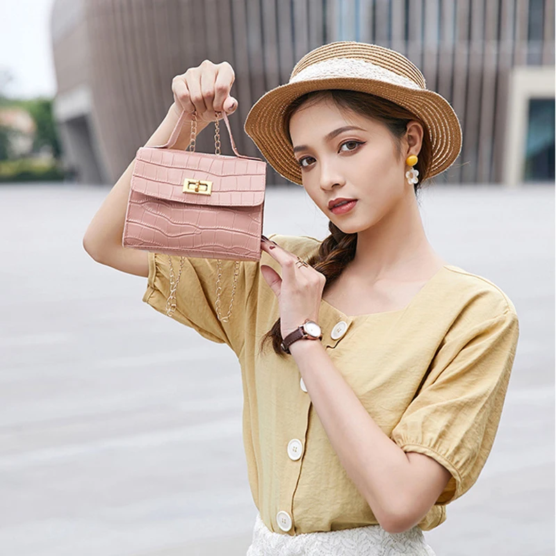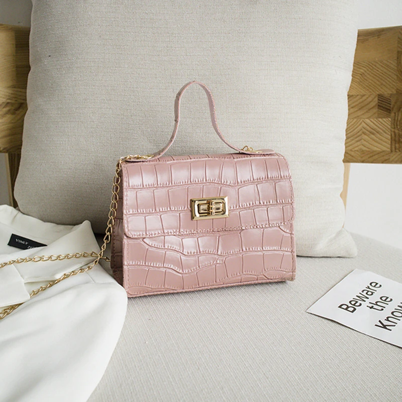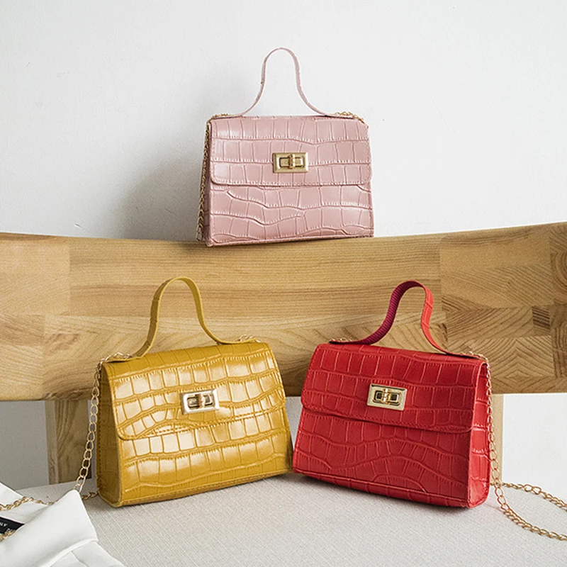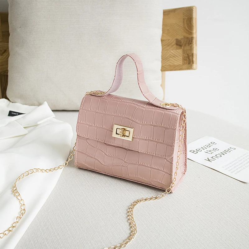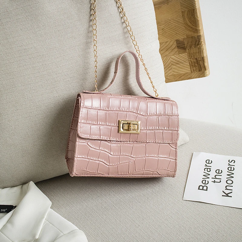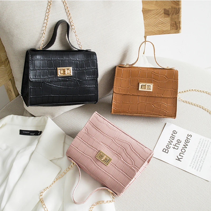 Сумка на плечо женская кожаная, саквояж кросс-боди в стиле ретро, однотонная сумочка на цепочке, чемоданчик