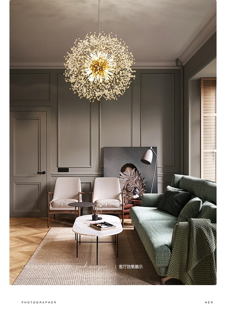 Одуванчик Led Люстра Хрустальный цветок декоративные лампы потолка круглый гостиной люстры прямоугольник кухонный островной свет