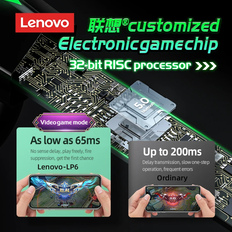 Беспроводные наушники Lenovo LP6 TWS, Bluetooth V5.0, спортивные наушники, игровые гарнитуры: без задержки, спортивные, универсальные Apple Android