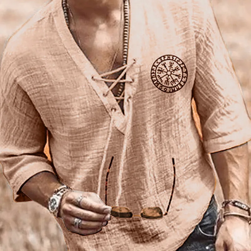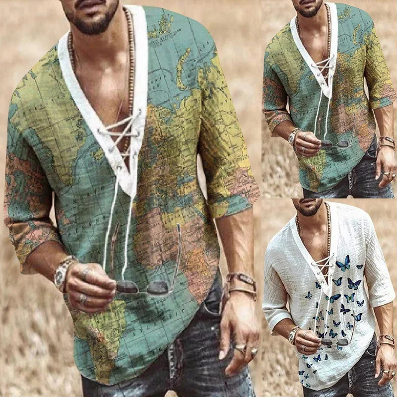 Футболка мужская льняная, с глубоким V-образным вырезом, повседневная, однотонная, лето, 2021