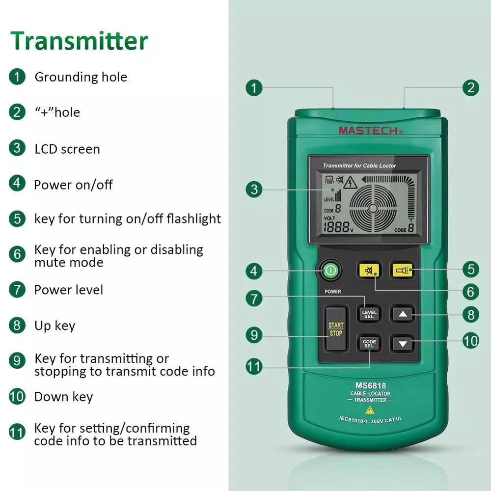 Портативный профессиональный кабельный трекер MS6818, детектор локации металлических труб, тестер, линейный трекер, напряжение 12 400 В
