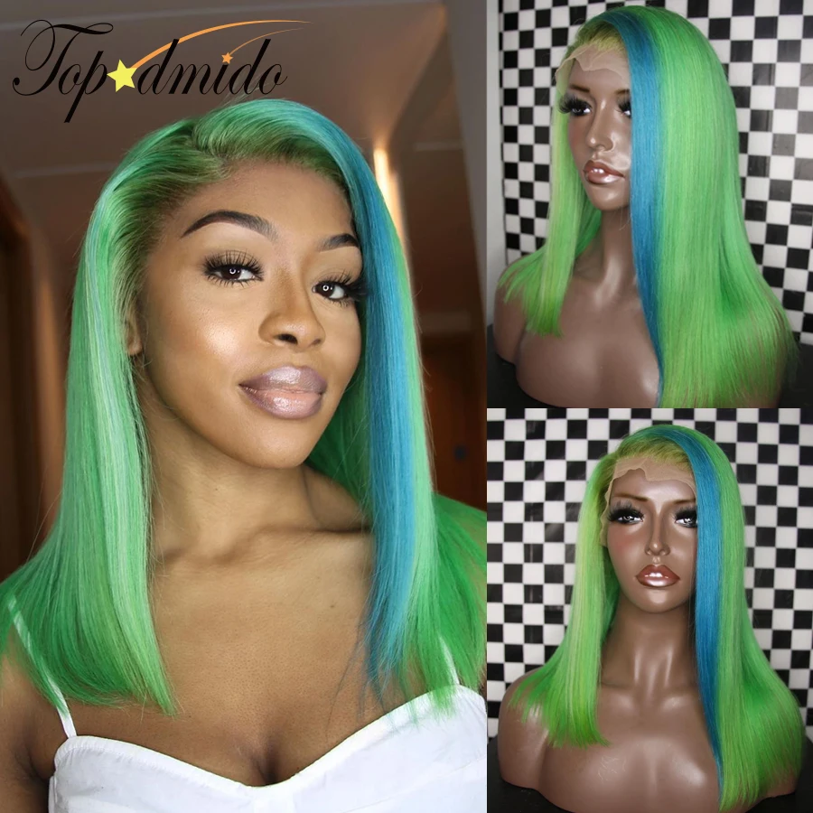 Парик TOPODMIDO Женский, короткий, голубой, зеленый, с детскими волосами