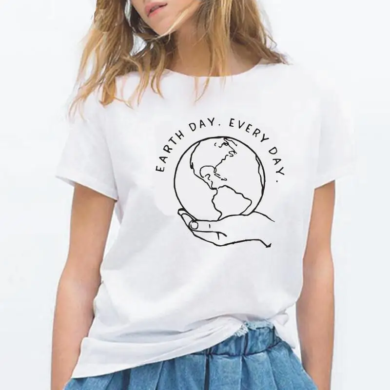 Женская футболка с принтом ежедневного дня земли, летняя женская футболка с коротким рукавом, Повседневная футболка в стиле Харадзюку, женские топы, женская футболка