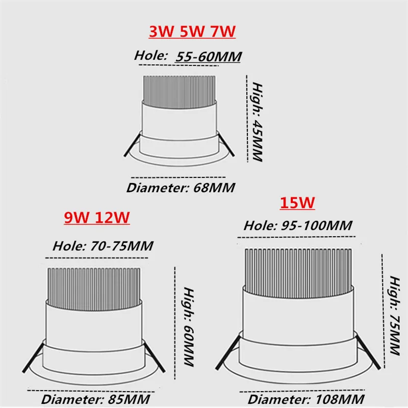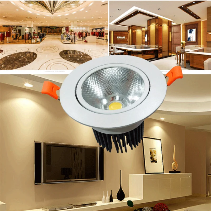 Круглые встраиваемые светодиодные светильники с регулируемой яркостью, 3 Вт, 5 Вт, 7 Вт, 9 Вт, 12 Вт, 15 Вт, COB светодиодные точечный потолочный светильник, светодиодный ная лампа