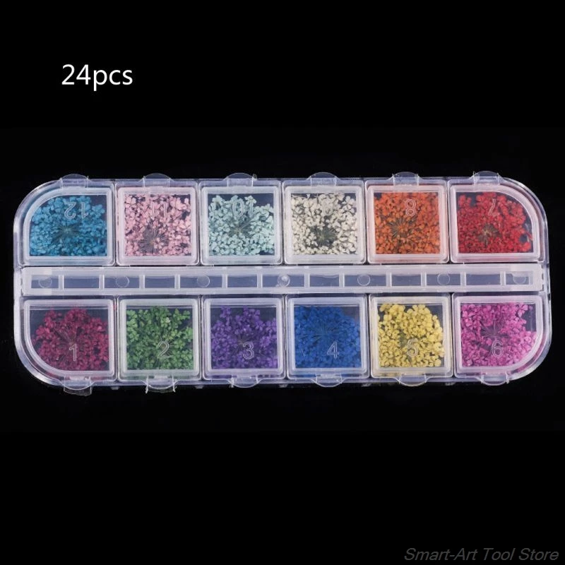 24 шт, настоящие с тисненным изображением цветка Анны кружевное высушенный цветок для ногтей искусство смолы для изготовления ювелирных изделий, прессованные цветы с коробкой. M02 21 Прямая поставка