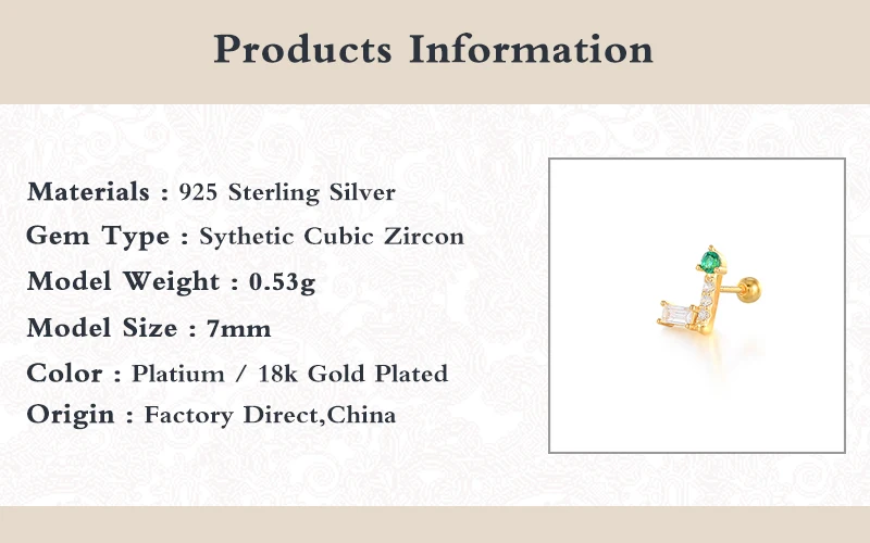 ROMAD 925 стерлингового серебра серьги на крючках Золотой пирсинг с...