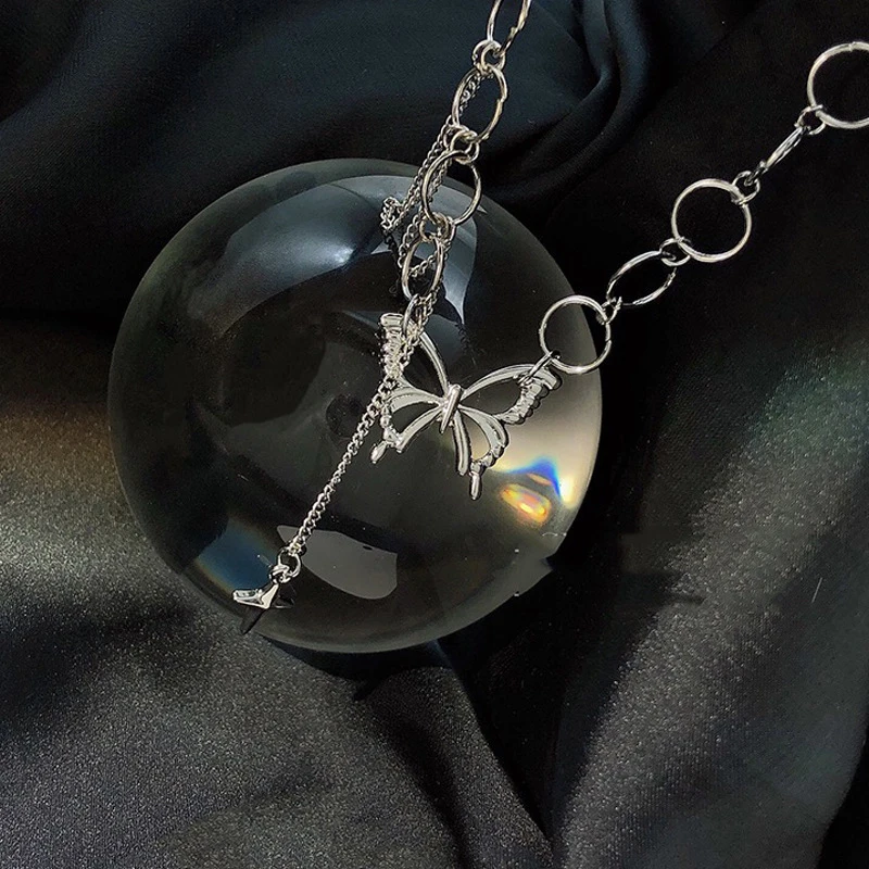 Чокер до ключиц в стиле панк, готика, Бабочка, новое ожерелье-цепочка из звеньев, женские ожерелья 2021, Женские Ювелирные изделия, полые круглые длинные кисточки