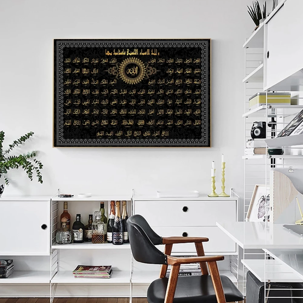 Исламский мусульманский холст картины, арабская каллиграфия 99 Бог ...
