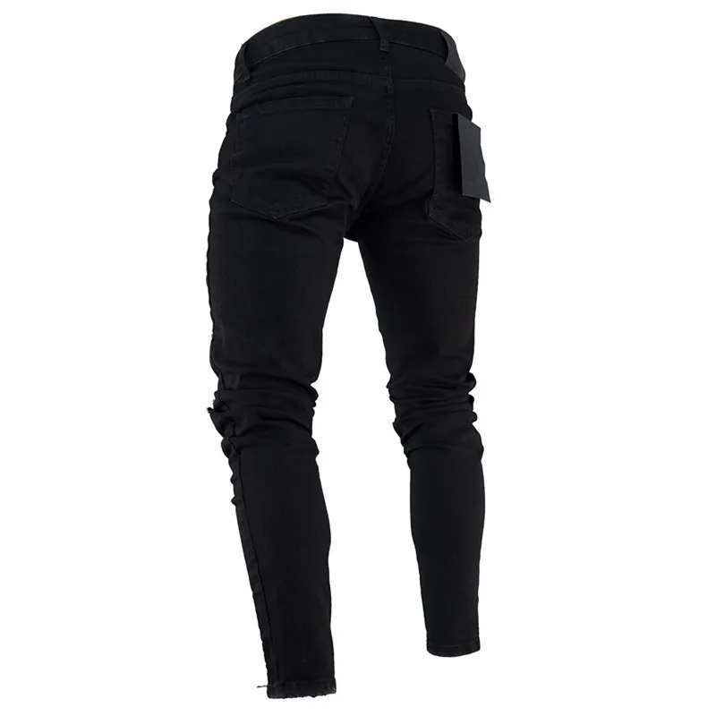 Мужские джинсы, зауженные, рваные, эластичные, в стиле хип-хоп, на молнии, повседневные, черные