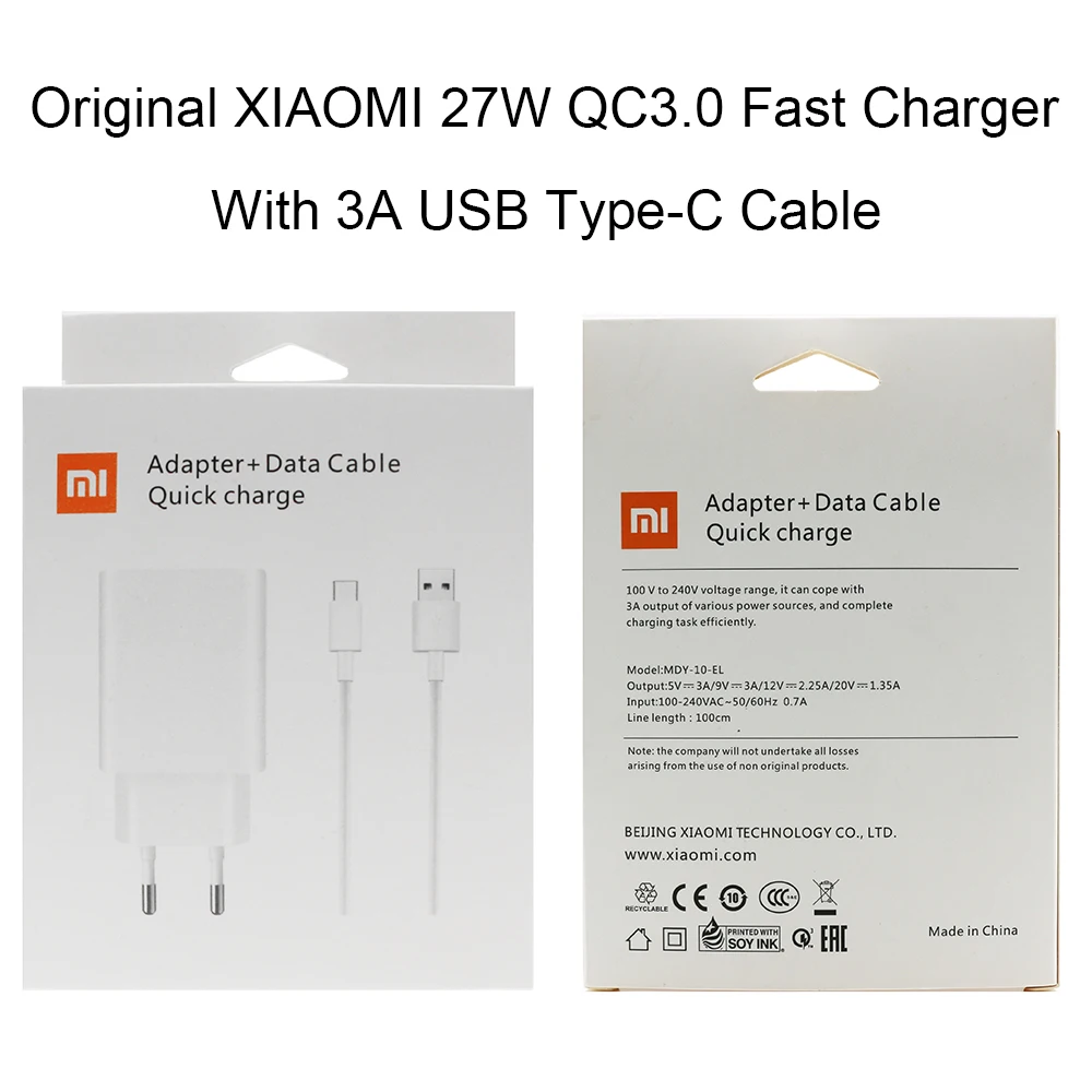 Оригинальное быстрое зарядное устройство XIAOMI 27 Вт ЕС QC 4,0 турбо адаптер для быстрой зарядки 3A Usb Type C кабель для Mi 9 t Pro K20 Pro Mi Note 10 Lite