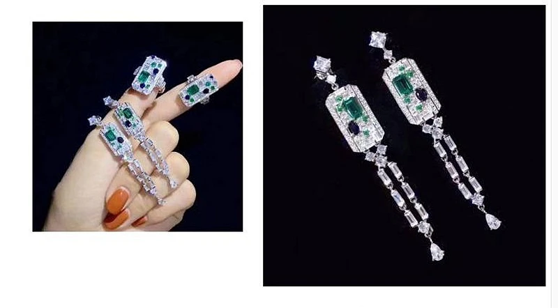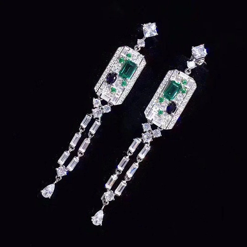 Роскошные модные серьгикольца из серебра 925 пробы с изумрудом