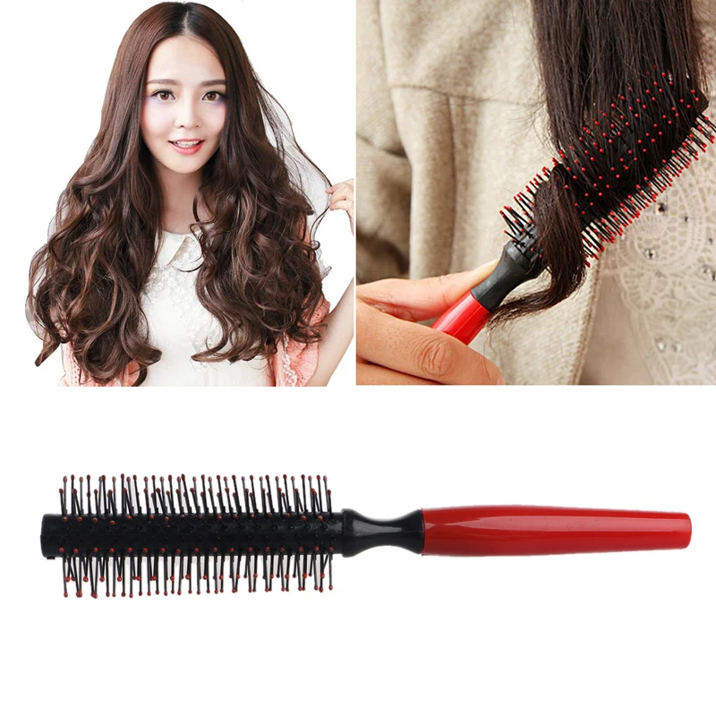 Расческа для волос с красной ручкой, круглая волнистая кудрявая щет...