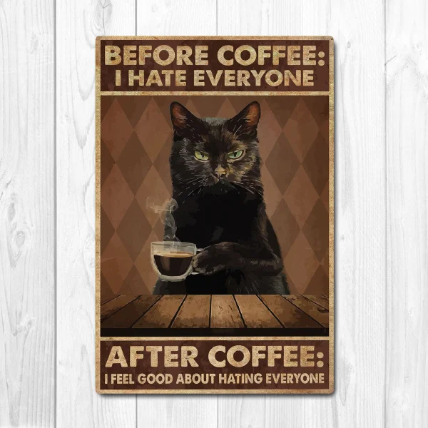 Плакат перед кофе после кофе, Постер в виде кошки, винтажный фотогр...