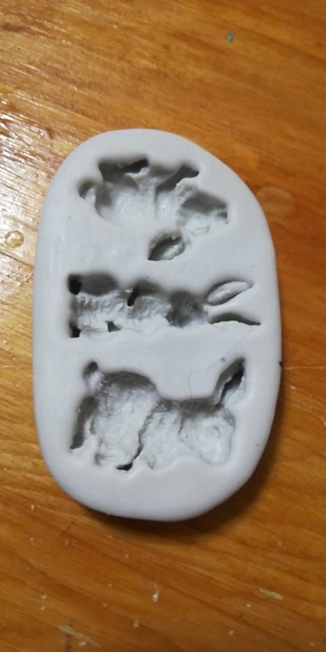 Высушите форму кролика, затем нанесите небольшое количество масла на каждую полость