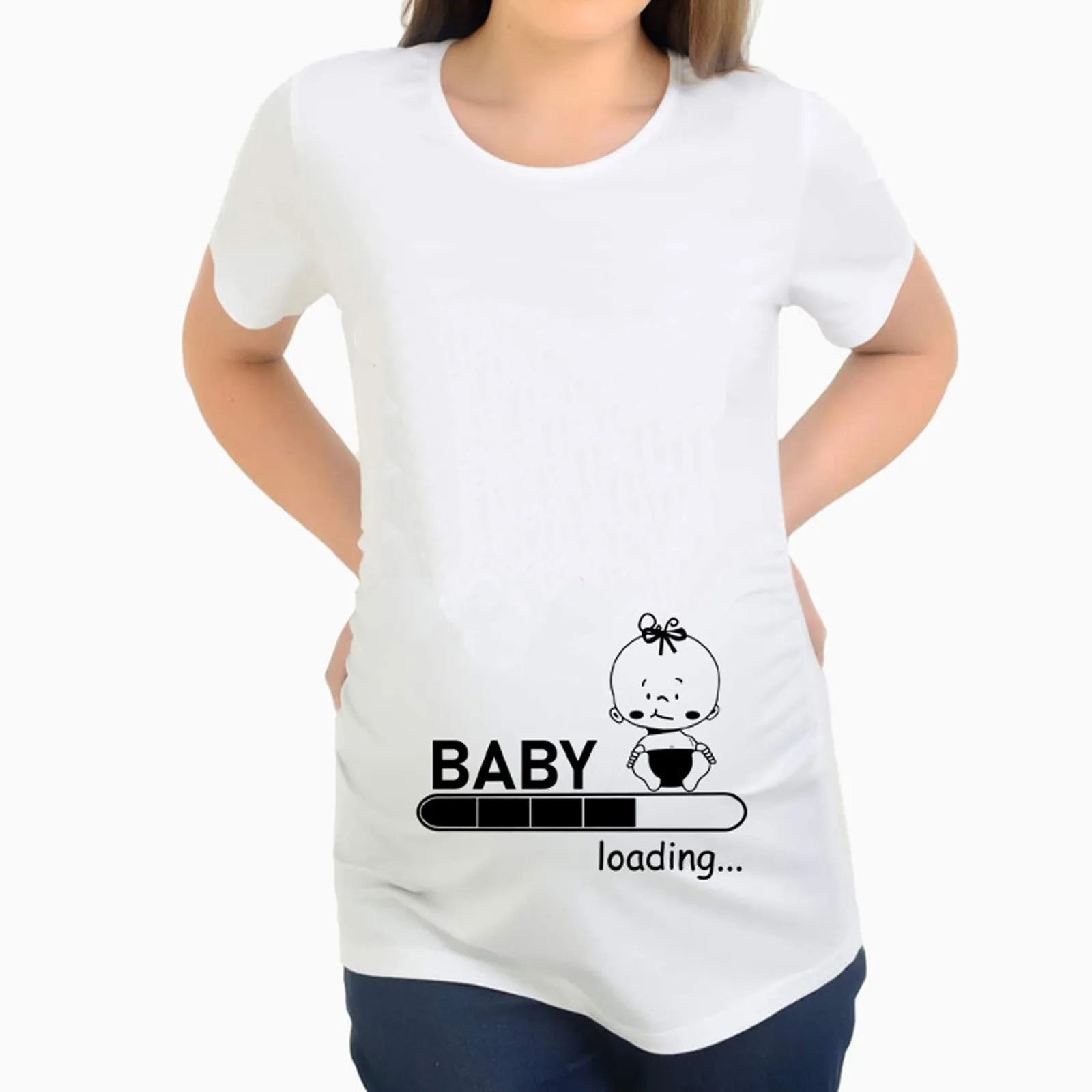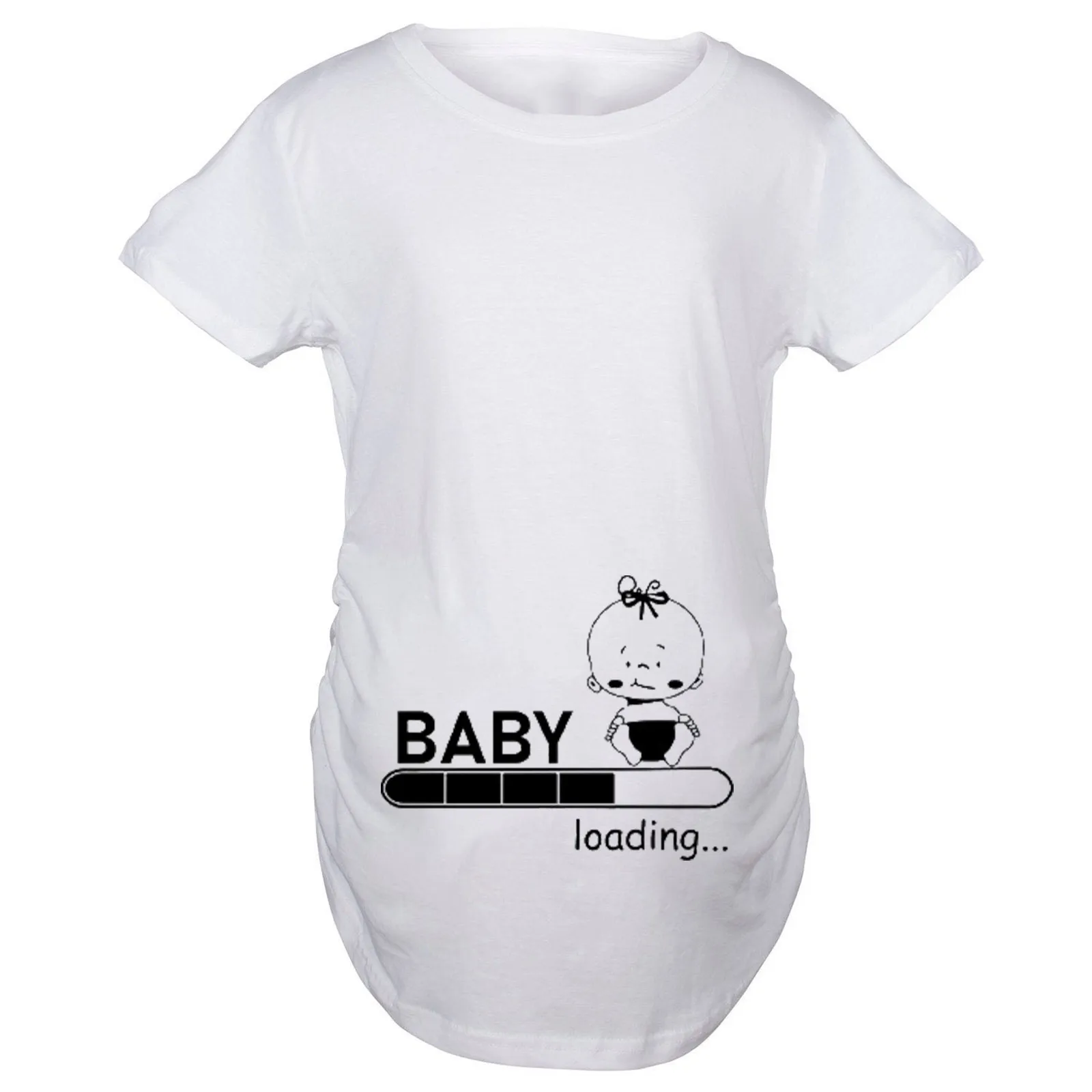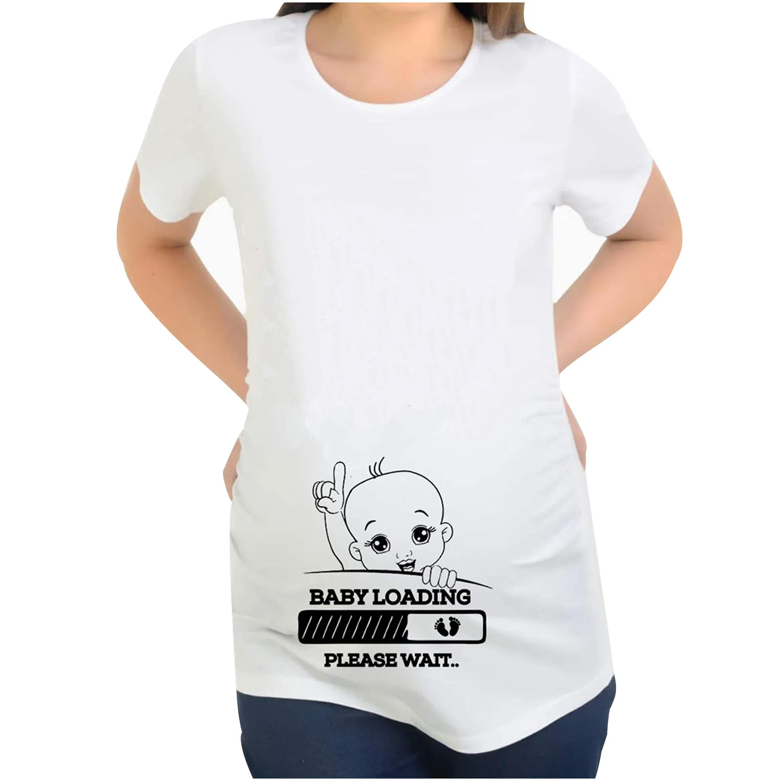 Женская Футболка для беременных, Одежда для беременных, летние однотонные свободные топы с круглым вырезом и короткими рукавами с буквенным принтом, Одежда для беременных
