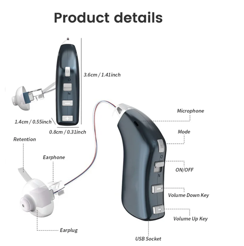 Цифровой слуховой аппарат, перезаряжаемый через USB, невидимый слух...