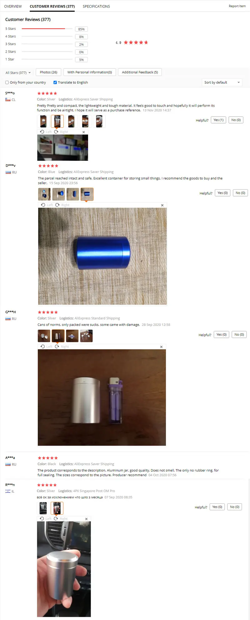 * Прочные, воздухонепроницаемые, контейнеры для хранения. * Наши банки для хранения изготовлены из высококачественного алюминия и являются идеальным решением для хранения и сохранения ваших любимых трав, продуктов питания или продуктов. * Эти тайники дискретны, просты в использовании и портативны. * В отличие от некоторых других алюминиевых банок, наши банки изготовлены с точной резьбой и более жестким уплотнением, чтобы сделать их устойчивыми к запаху, без запаха, воздухонепроницаемыми и водонепроницаемыми. * Кроме того, алюминий обеспечивает инертную нереактивную поверхность, которая не деградирует, не выскальзывает и не поглощает хрусталины. * Наши алюминиевые банки блокирусветильник в том числе ультрафиолет), что особенно повреждает органические материалы, сохраняя ваши товары свежими дольше. * Их можно использовать для хранения несъедобных товаров, таких как лосьоны, масла и ликеры. Наши емкости для хранения SimpleChoice оптимизированы для обеспечения высокой функциональности, долговечности, чтобы ваши вещи оставались свежими и чистыми, а также не были обнаружены даже в самых взыскательных носах, независимо от сильного запаха. * Особенности: Материал: алюминий Размер: как показано на изображении Цвет: как показано на изображении Состояние: 100% новый Полезные советы: -Размер измеряется вручную, пожалуйста, допустите незначительную погрешность измерения. -Цвет на фотографии может немного отличаться от фактического продукта из-за цветопередачи различных мониторов. * Посылка: 1 шт. баночек для хранения