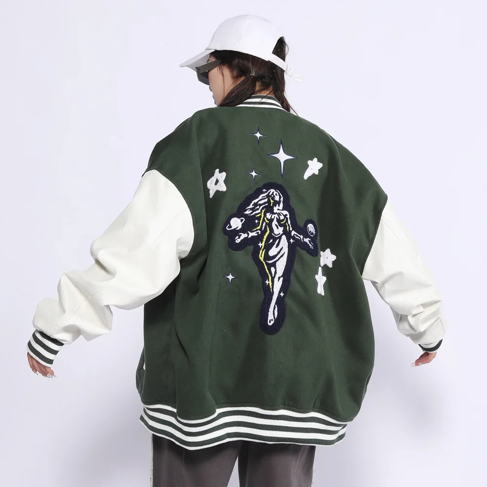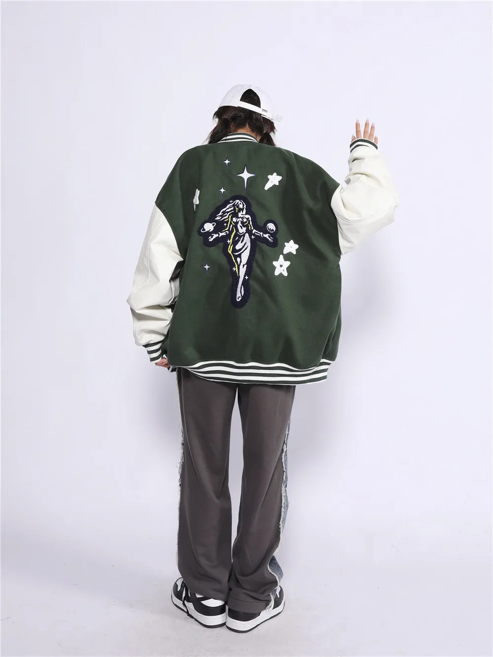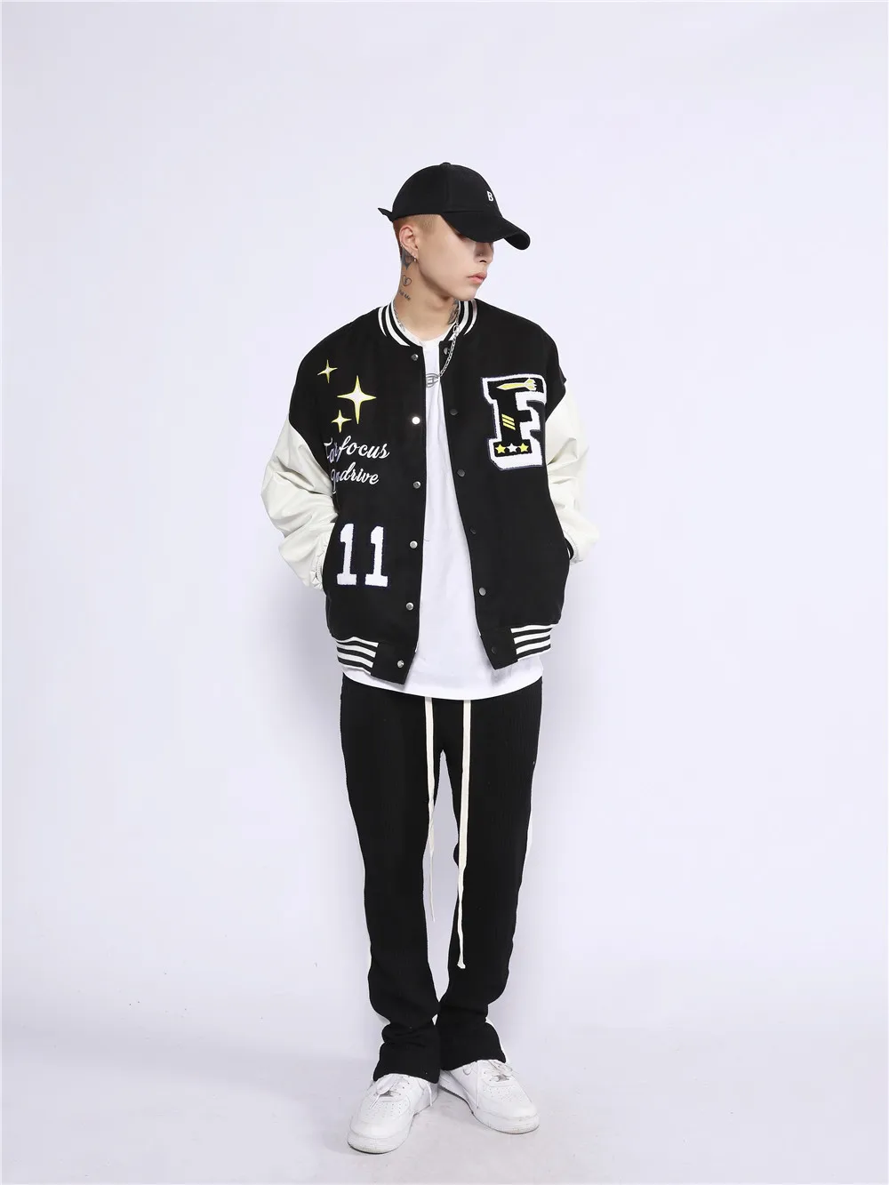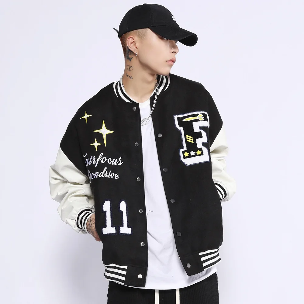 Куртка мужская бейсбольная в стиле хип-хоп, винтажная уличная одежда в стиле пэчворк, с вышивкой и надписью, повседневная куртка из искусственной кожи с цветными блоками для пар