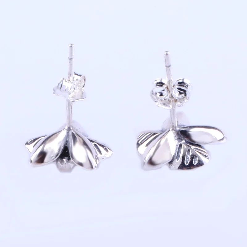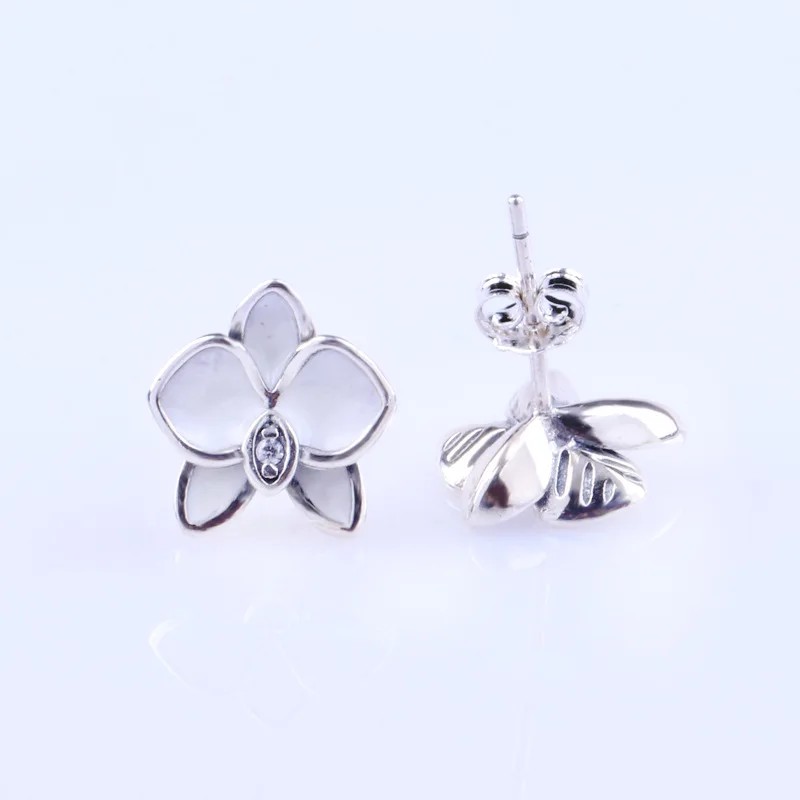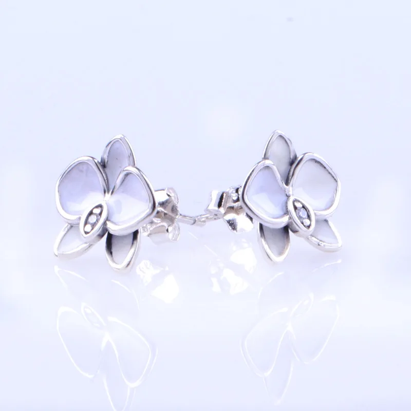 Женские серьги Сковорода из серебра 925 пробы с белой орхидеей