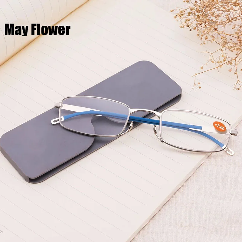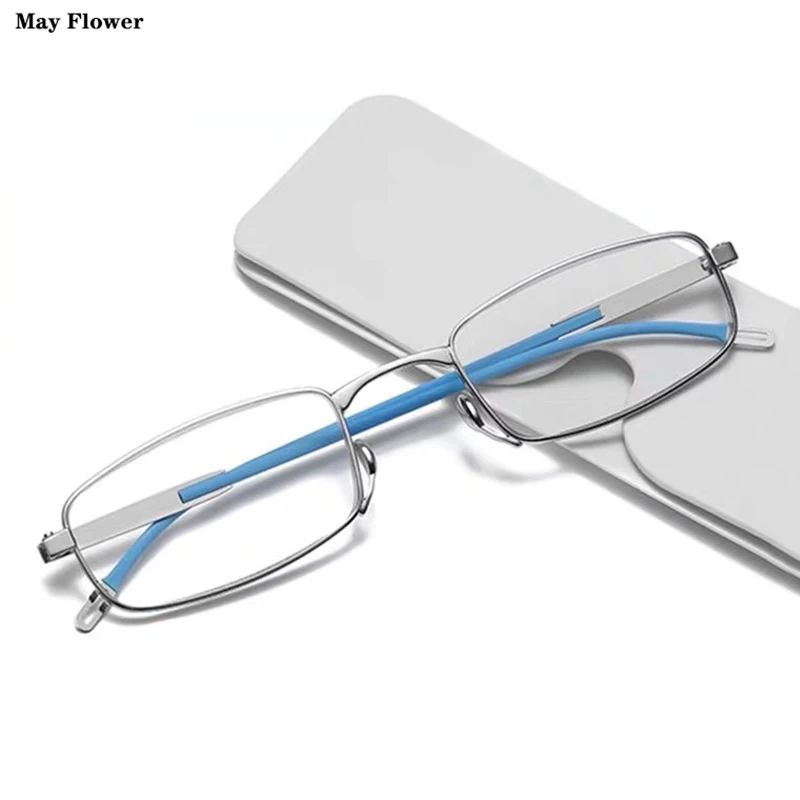 Возможно, с цветочным рисунком Модные металлические очки для чтения в форме квадратные очки с диоптриями для женщин Портативный синий светильник увеличительная линза для очков с чехол + 2