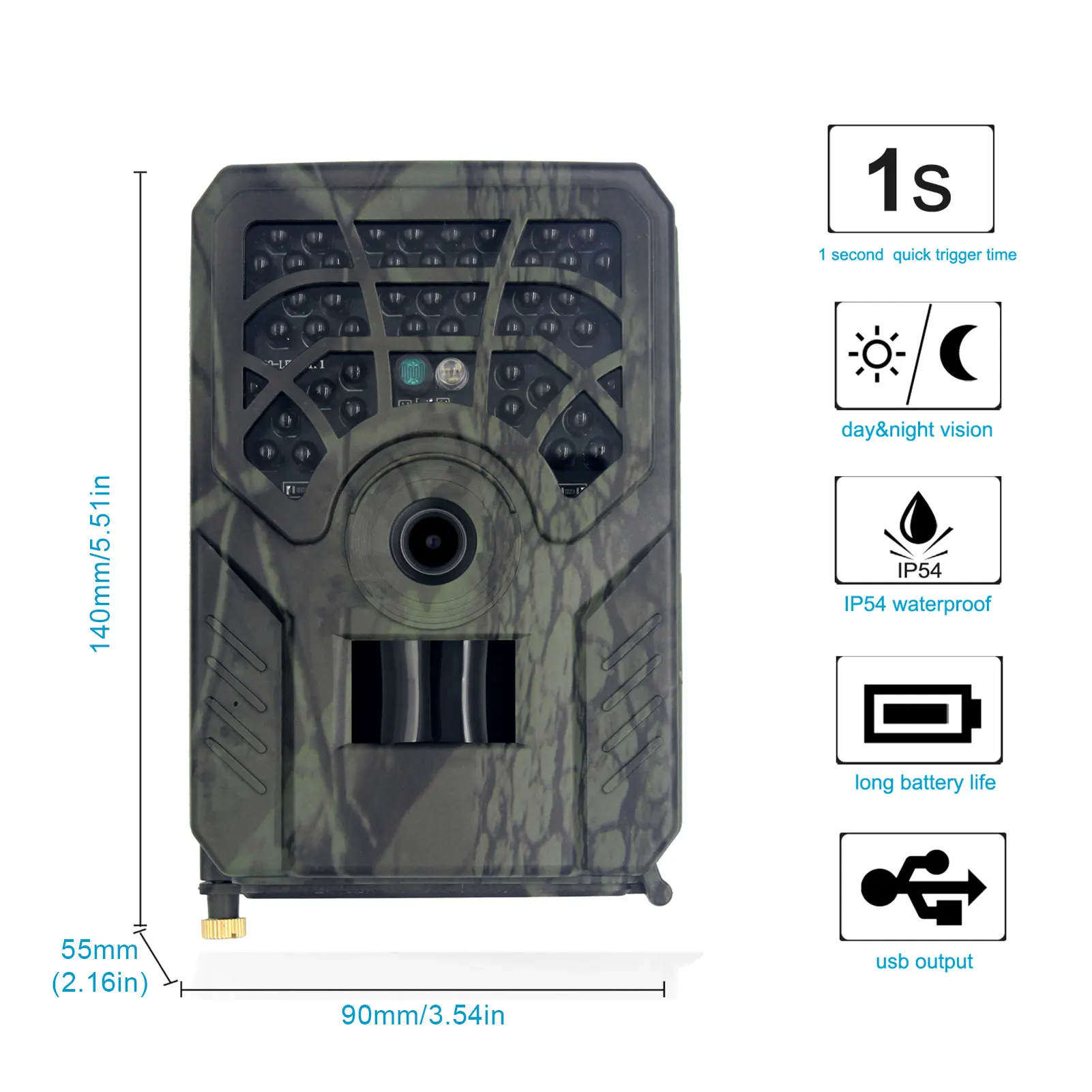 Особенности:1. HD камера: камера trail проста в использовании и может удерживать tf-карту на 32 ГБ, чтобы запечатлеть четкие изображения. Камера trail имеет технологию Flextime + time-lapse photography, технологию Redux Anti-Blur и систему контроля экспозиции, которая может обеспечить четкие изображения высокой четкости и высококачественные изображения.2. Широкий Формат: скорость запуска 0,8 секунд и угол обнаружения 90 градусов может гарантировать, что животных может быть захватили быстро всякий раз, когда они проходят и никаких действий не будут пропущены.3. Функция мониторинга: камера имеет встроенные несветящиеся 940нм черные 46 инфракрасных светодиодов, которые могут контролировать животных ночью, не пугая их, и даже может фотографировать животных с расстояния 66 футов. При падении ночью инфракрасный светильник автоматически включается и снимает черно-белые изображения.4. Водонепроницаемый и энергосберегающий: камера является водонепроницаемой IP54, которая очень подходит для-4-140 °F рабочей среды, и она использует 2 батареи 18650 (не входят в комплект) с ультра-низким энергопотреблением. В режиме ожидания может использоваться до 12 месяцев. Поддерживает внешний источник питания через 5 в постоянного тока.5. Многофункциональная камера: поддержка SD карты, SD/SDHC карты максимум 32 Гб. С помощью настенного типа и ремней в форме дерева, камера может быть прочно закреплена на стене/потолке/дереве с помощью портативного чемодана, эта камера подходит для домашней безопасности, И игр.Характеристики:Датчик изображения: 1 МП Цвет CMOSРазрешение фото: 5 Мп 2560*1440 Разрешение видео: 1280*720P, 640*480 30 кадров в секундуВремя срабатывания: 0,8 SРежим работы: 3 фото + 10s видеоPIR угол: 110 градусовОбъектив: широкий 120 градусовИК-светодиодный: 46 шт. 940нм черный свет, 15 мРасстояние PIR: 15 мПамять: Макс SD 32 Гб (не включая карту памяти)Разъем USB: 5 контактов USB 2,0Источник питания: 2 шт. 18650 батареи или 5 в постоянного тока (блок питания не входит в комплект)Водонепроницаемость: IP54Время работы: 12 месяцевТок: 0,01 мАРазмер: около 135*90*55 мм/5,31*3,54*2,17 дюймовВес: около 160 гТемпература: -10 ~ + 70 ℃/-14 ~ + 158 ℉Сертификация: CE, FCC, ROHSУпаковочный лист:1 x камераМонтажный ремешок-1 шт.1 х USB кабель1 х РуководствоКард-ридер-1 шт.