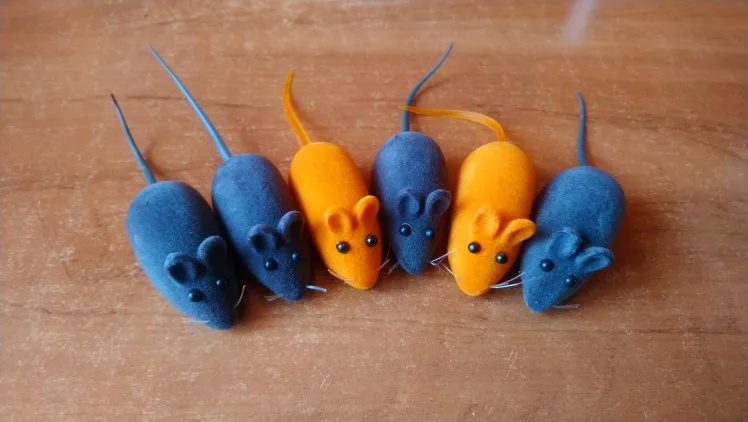 Силиконовая мышь из кроличьего меха, игрушки для домашних животных, для кошек, с перьями, с радужным шариком, забавные мини-игрушки для кошек, котят, 2 дюйма