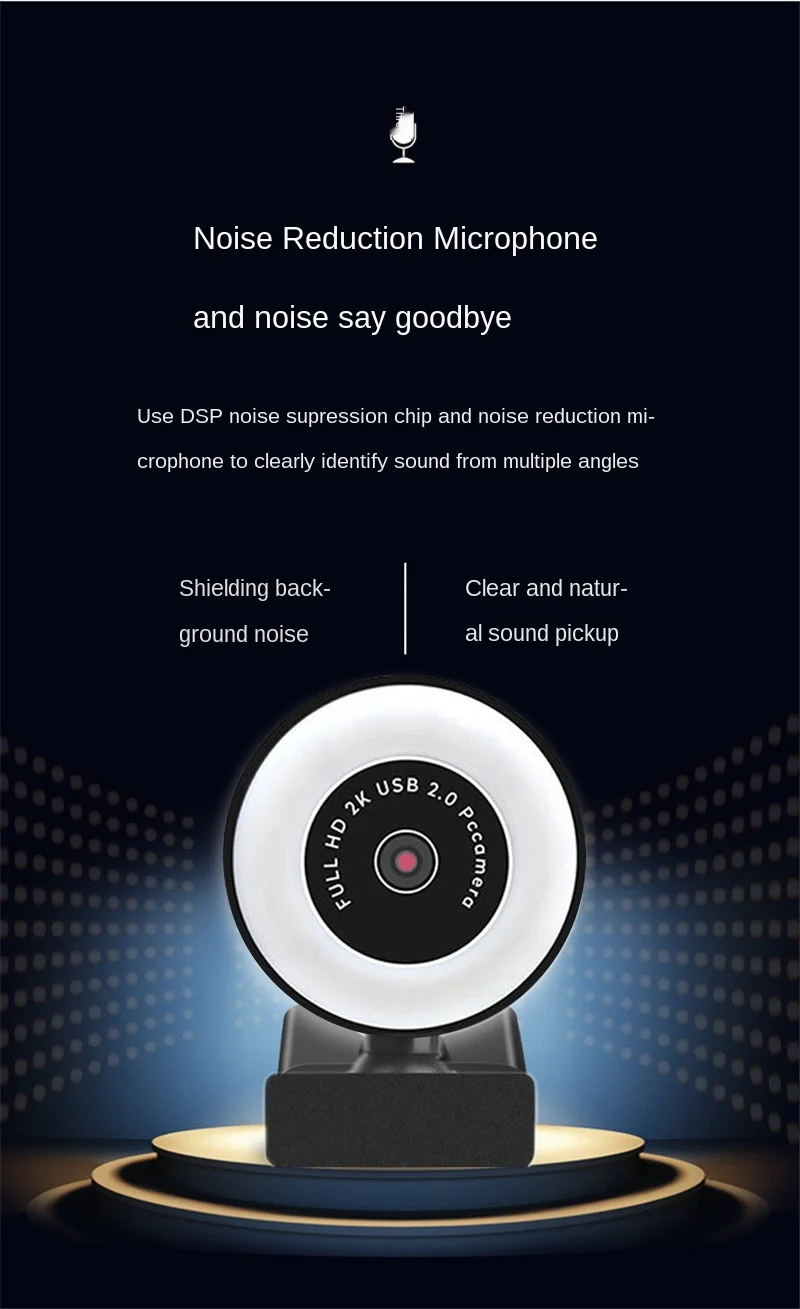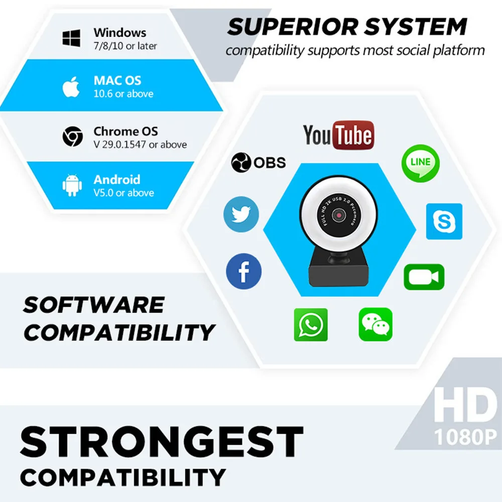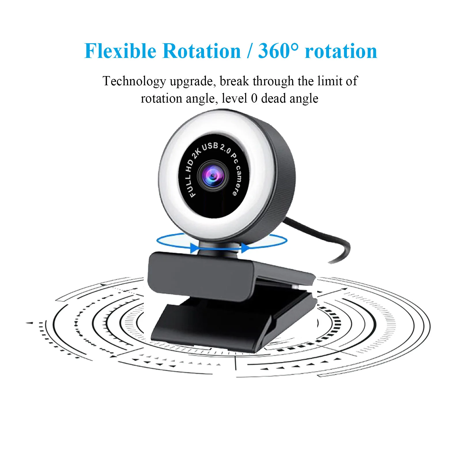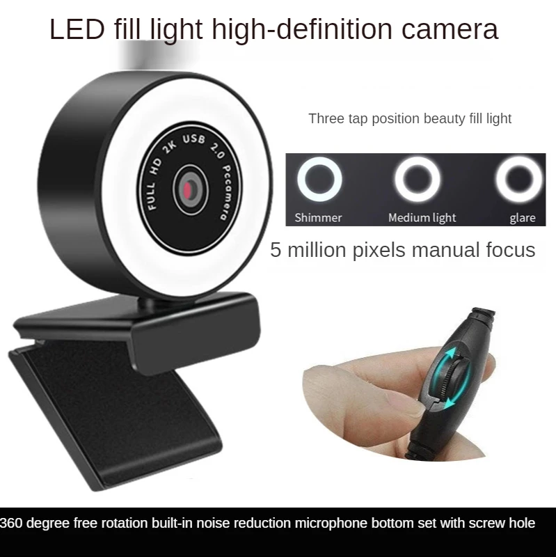 Светодиодная подсветильник ка ELRVIKEC 2021, Компьютерная камера HD 2K с автофокусом, веб-камера с USB