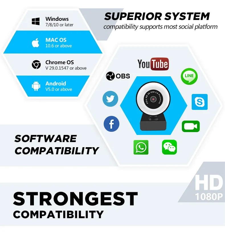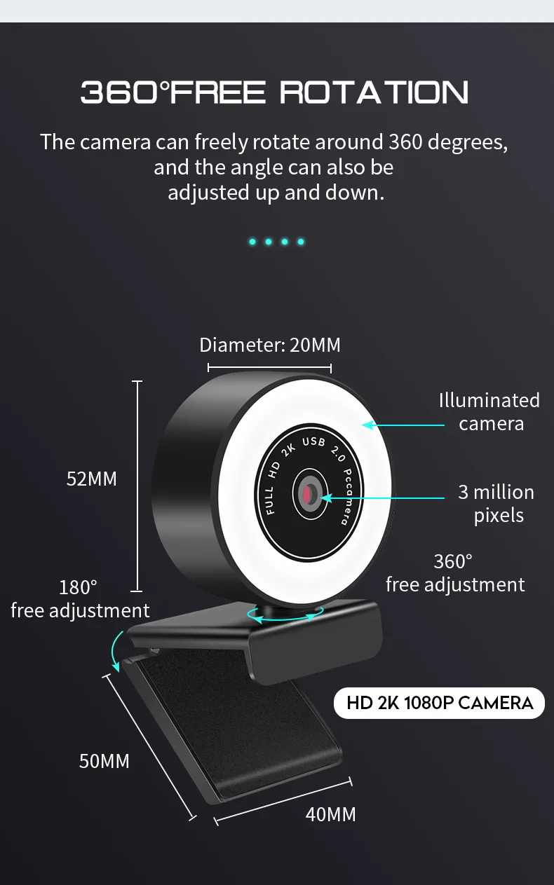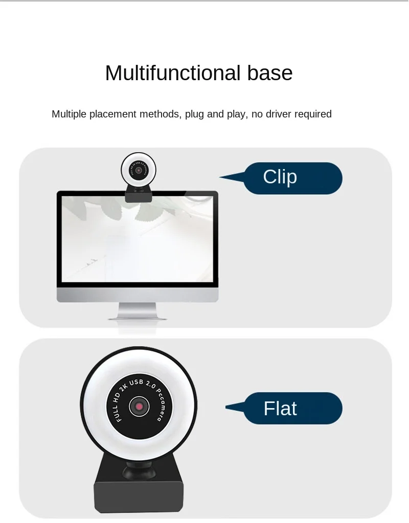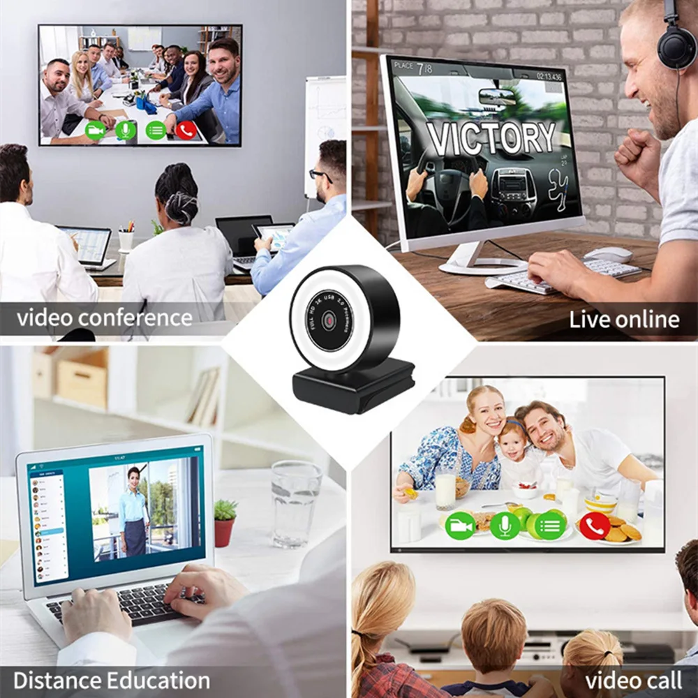 Светодиодная подсветильник ка ELRVIKEC 2021, Компьютерная камера HD 2K с автофокусом, веб-камера с USB