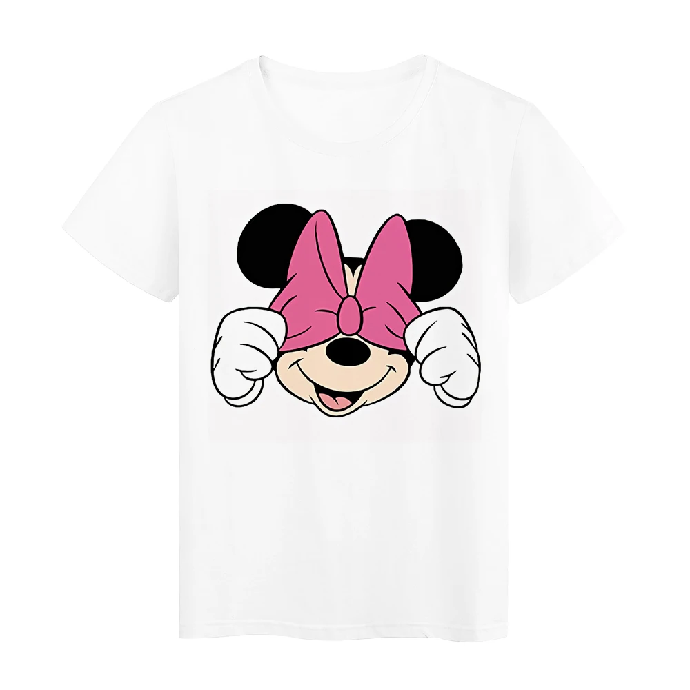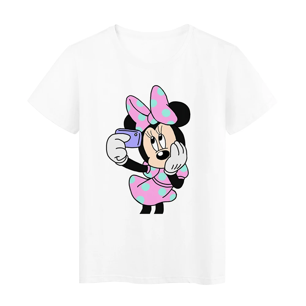 Женская футболка с принтом Минни Маус, Повседневная Базовая белая д...