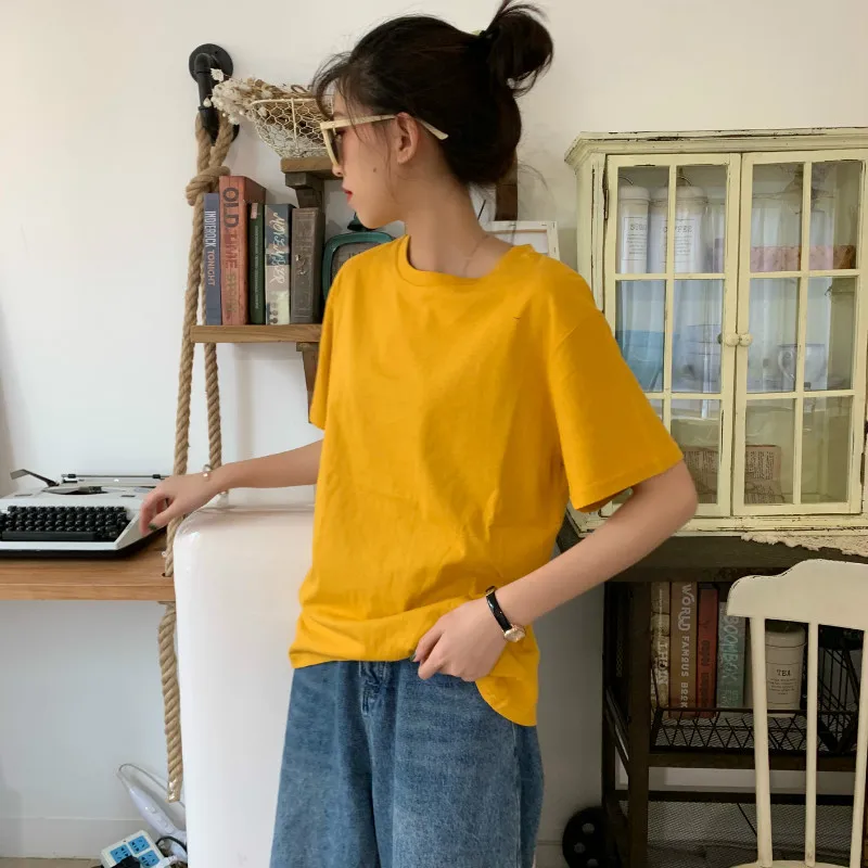 Футболка женская хлопковая, однотонная, свободного кроя, цвета хаки, белый, черный, в Корейском стиле, для лета, 2021