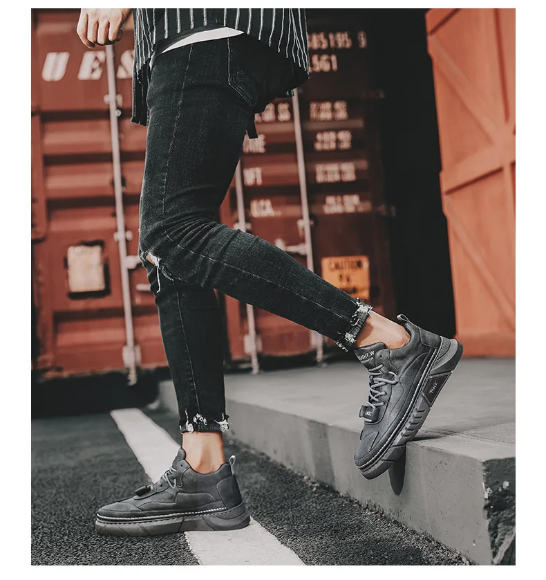 Мужская обувь с высоким верхом на осень и зиму, Мужская обувь в британском стиле для бега и спорта, Маленькая кожаная обувь, мужские ботинки для инструментов