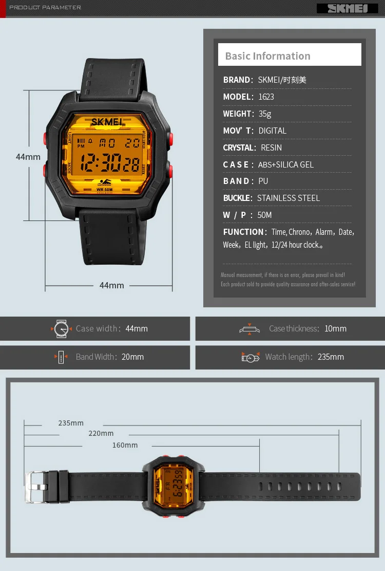 Часы наручные SKMEI Мужские Цифровые, спортивные светящиеся водонепроницаемые в стиле милитари, 5 бар