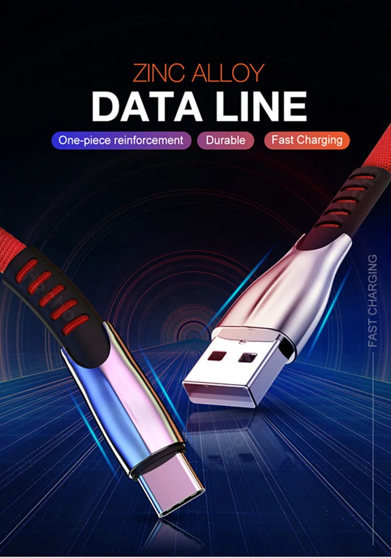 Нейлоновый кабель с оплеткой из цинкового сплава для быстрой зарядк...