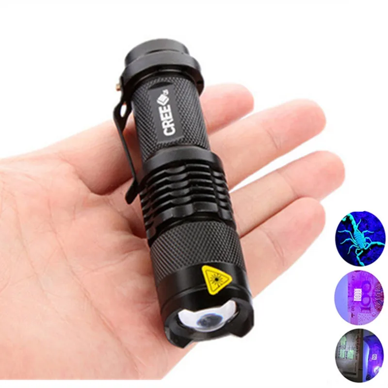 Высокое качество UV светильник 51 100 светодиодный Q5 светодиодный UV светильник с переменным фокусным расстоянием вспышка светильник фонарь светильник лампа безопасности Ультрафиолетовый обнаружения AA батарея A1