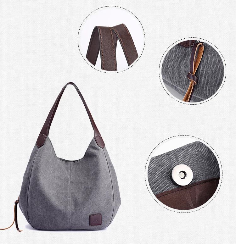 Трехслойные карманные повседневные холщовые сумки на плечо для женщ...