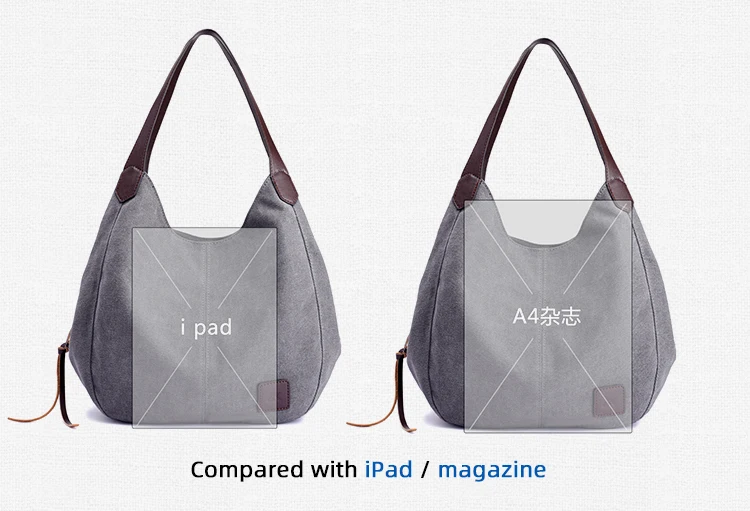 Большая Холщовая Сумка на плечо Piler, женская сумка с карманами, д...