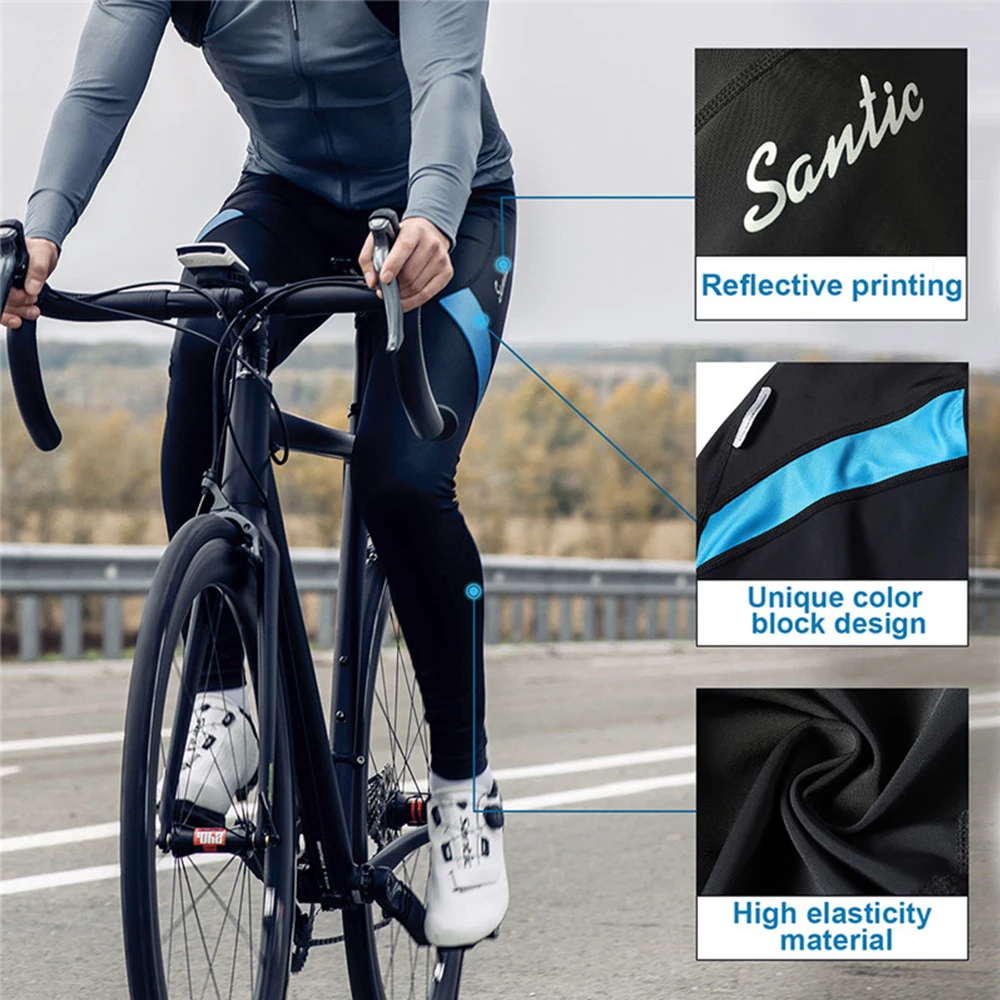 Мужские велосипедные комбинезоны Santic, мягкие дышащие длинные колготки, компрессионные велосипедные зимние брюки, спортивные Леггинсы для верховой езды