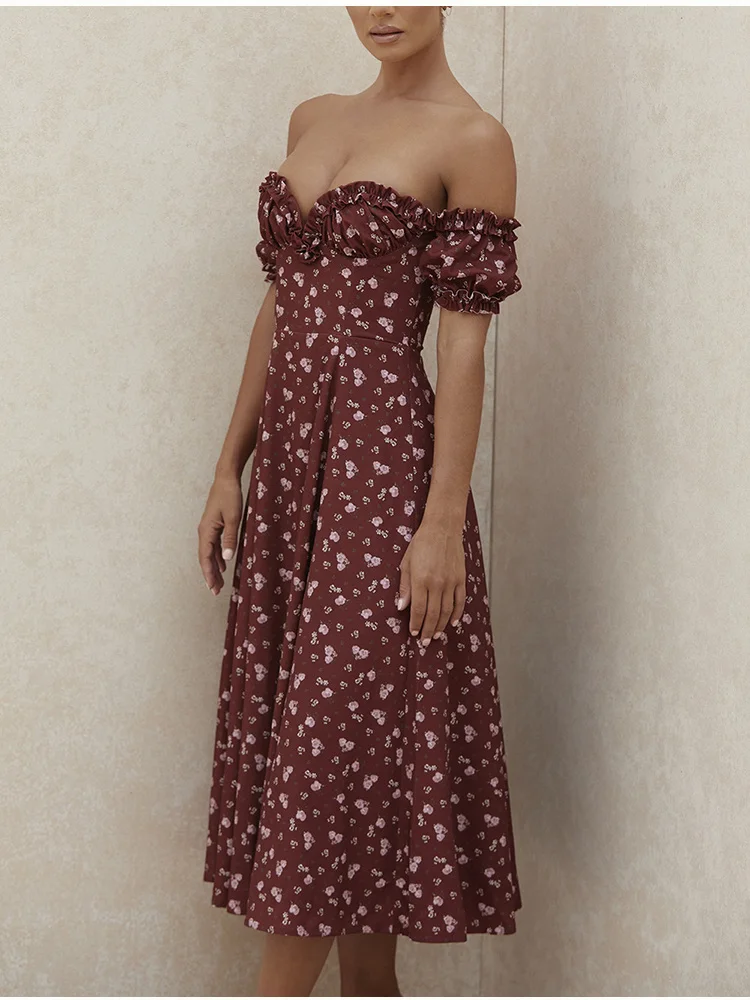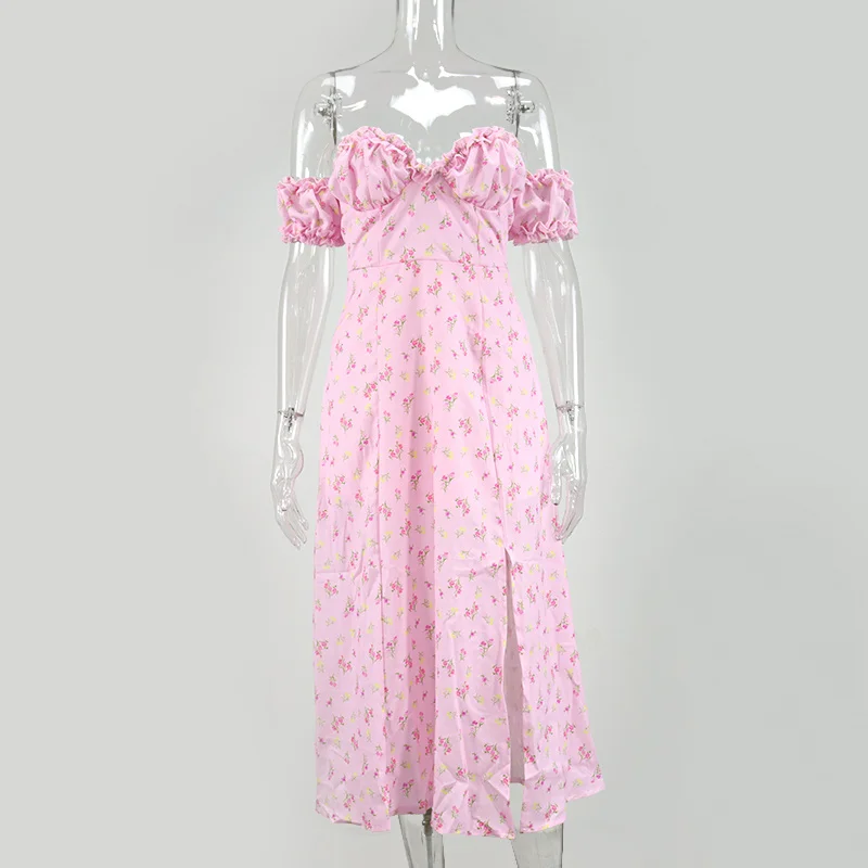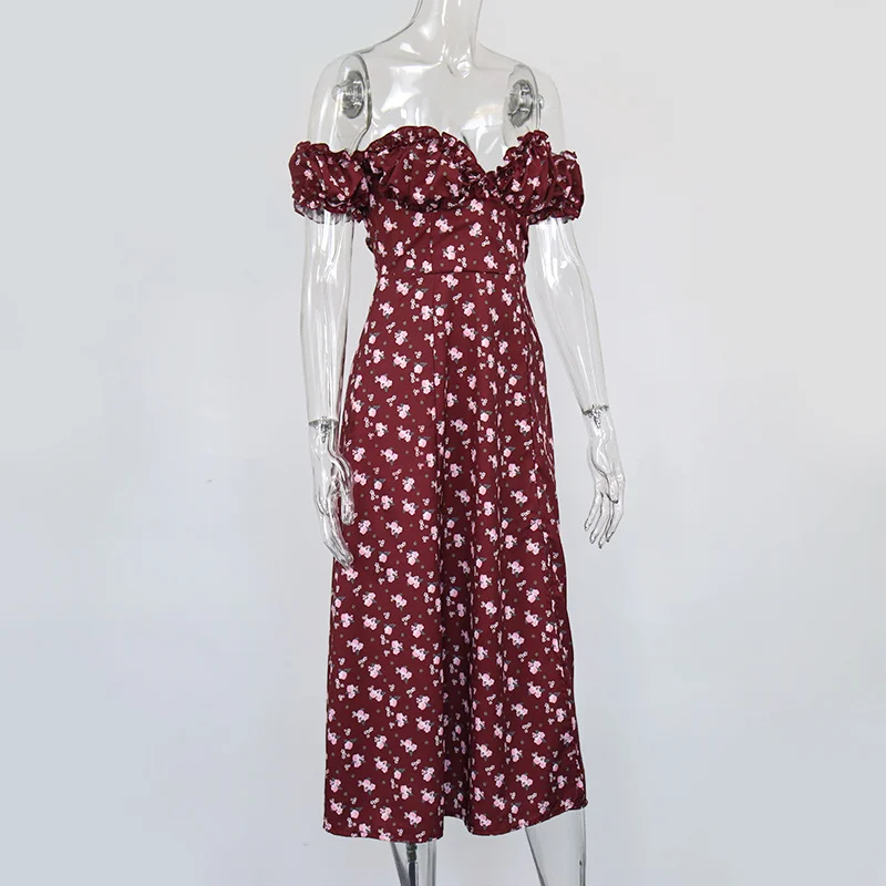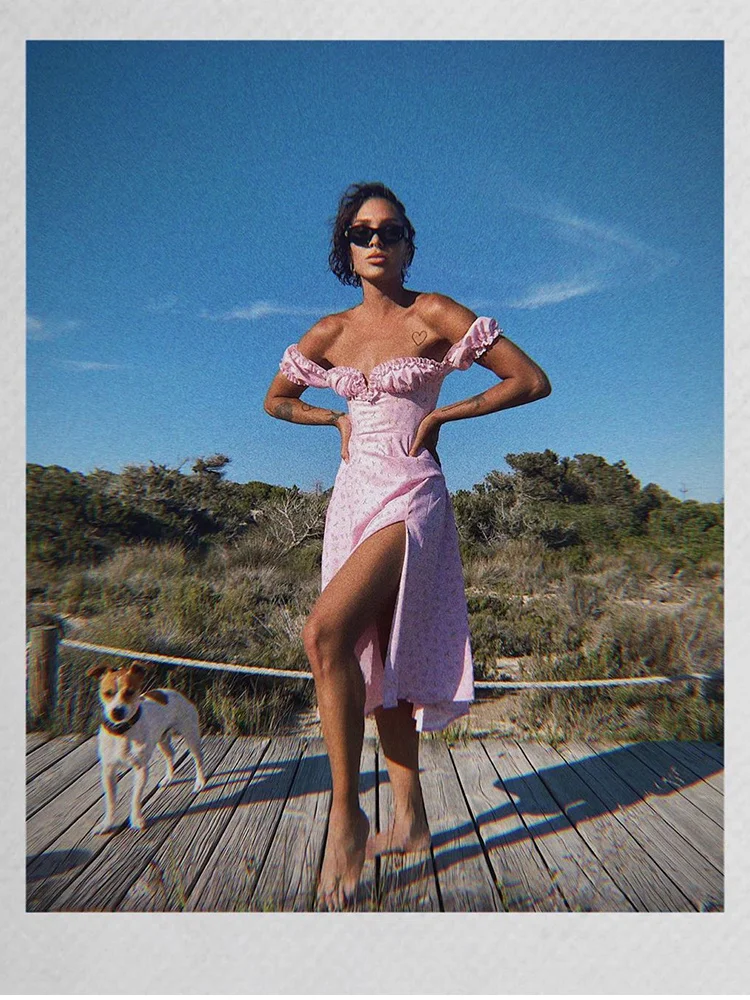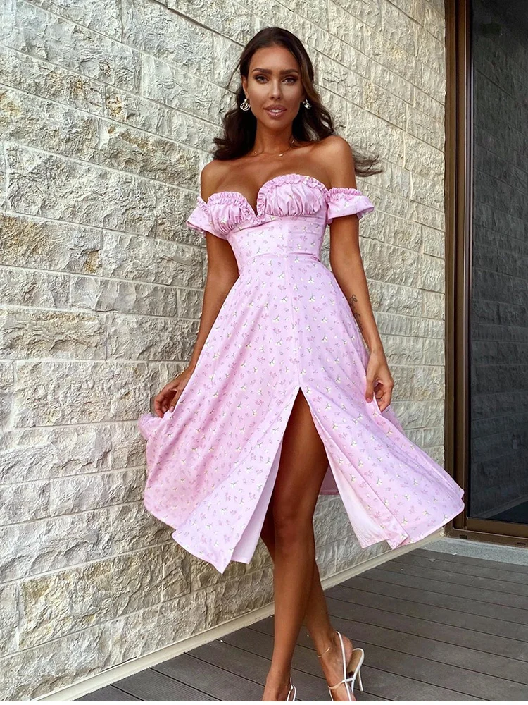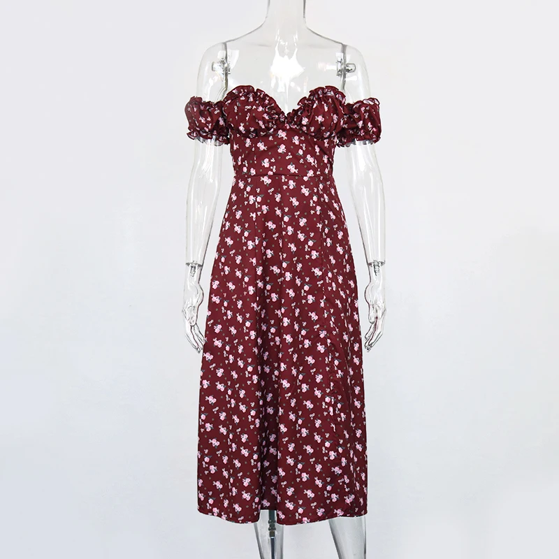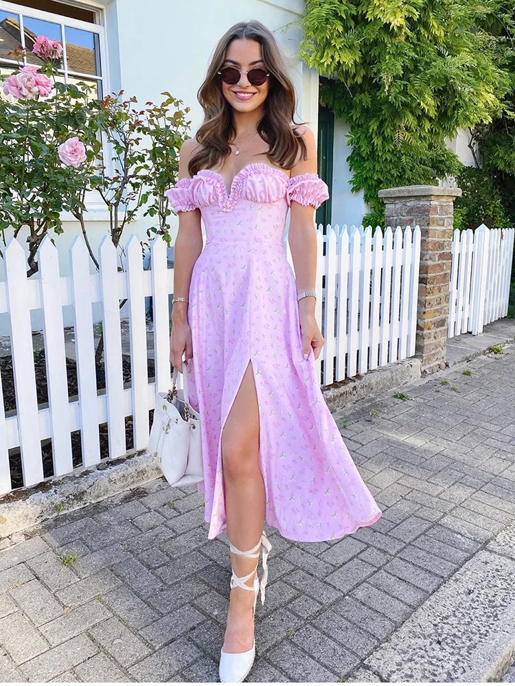 GIONCCI с открытыми плечами; Летние туфли на танкетке и с отделкой по краю; Летнее платье с цветочным узором, сексуальное платье без бретелек Длинные платья для женщин с низким вырезом на спине высокое Разделение с принтом пляжное платье