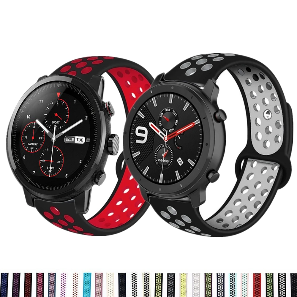 Силиконовые ремешки 22 мм для Huami Amazfit GTR 47 мм Pace дышащий спортивный браслет для Amazfit GTR 2 2e Stratos 2 2S 3 с обратной пряжкой