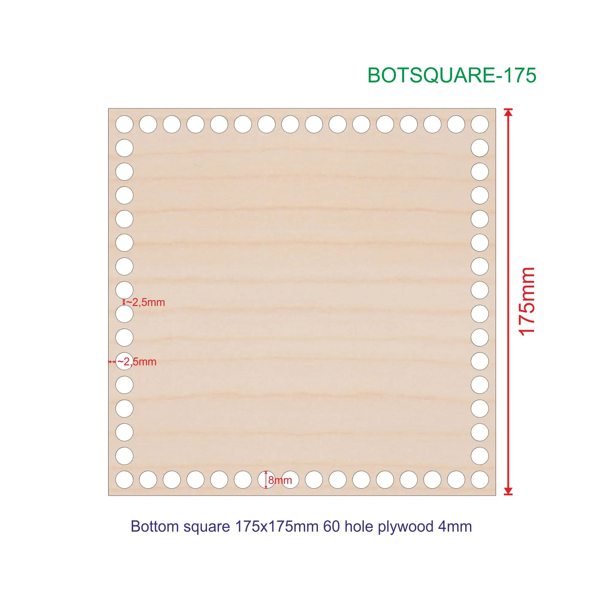 Донышко для корзин квадратное, изготовлено из фанеры толщиной 4мм. Диаметр отверстия 8мм.