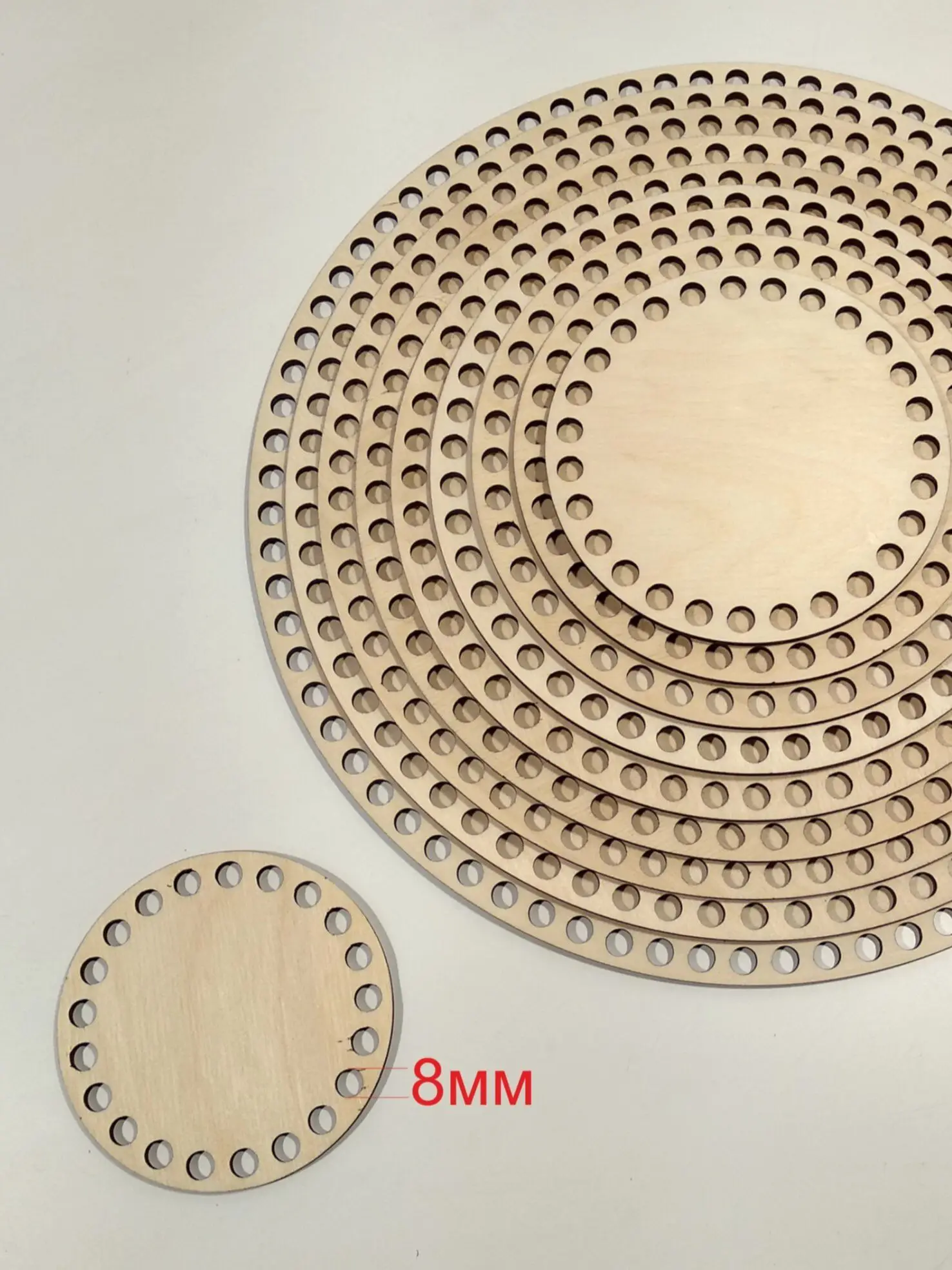 Донышко для корзин круглое, изготовлено из фанеры толщиной 4мм. Диаметр отверстия 8мм.